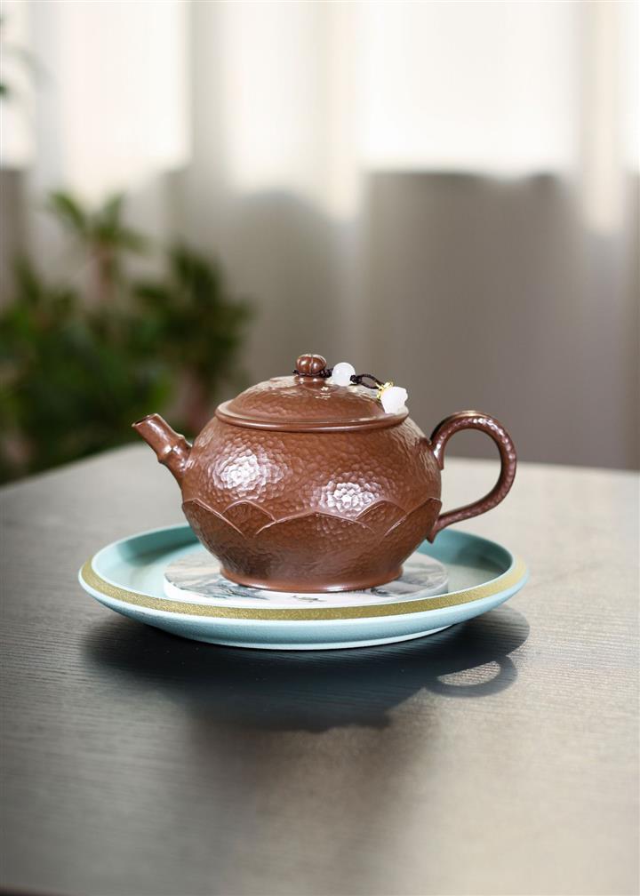 250cc原礦文革紫泥錘紋蓮花圓珠泡茶壺POT9357