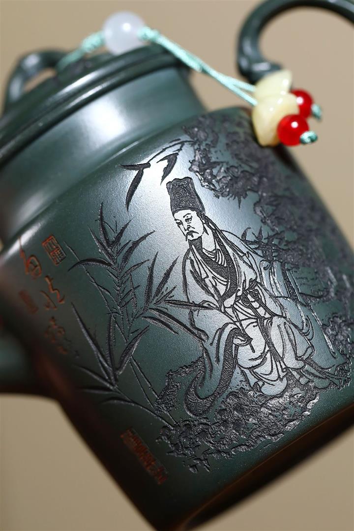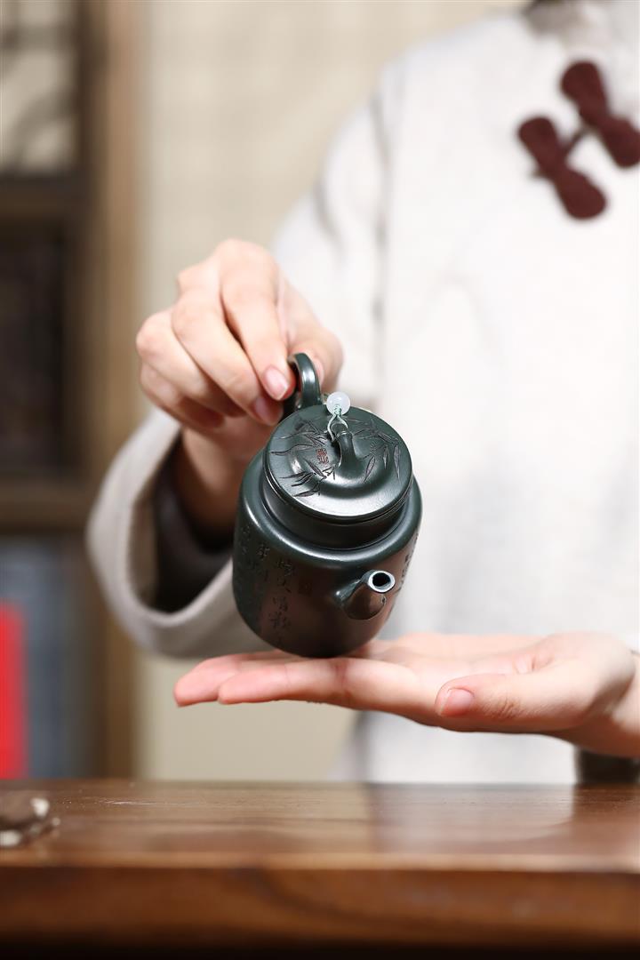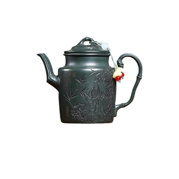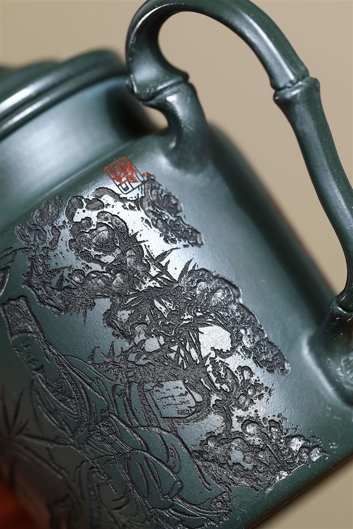170cc原礦翡翠綠泥清風竹韻泡茶壺POT9366
