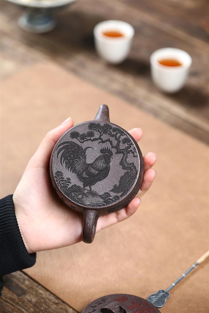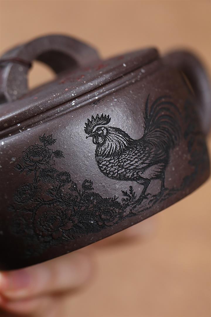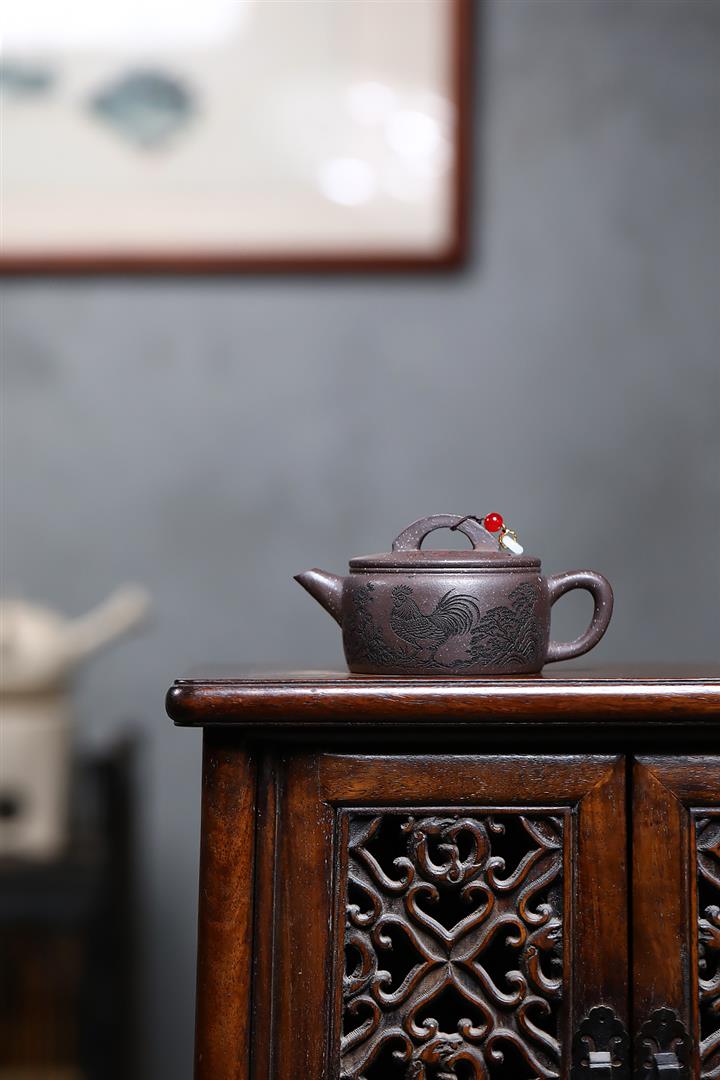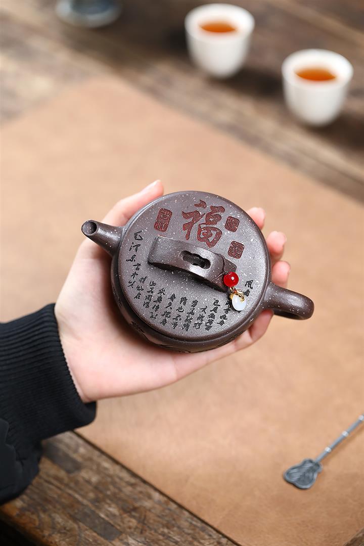 原礦紫泥雕塑福星高照茶壺POT7881