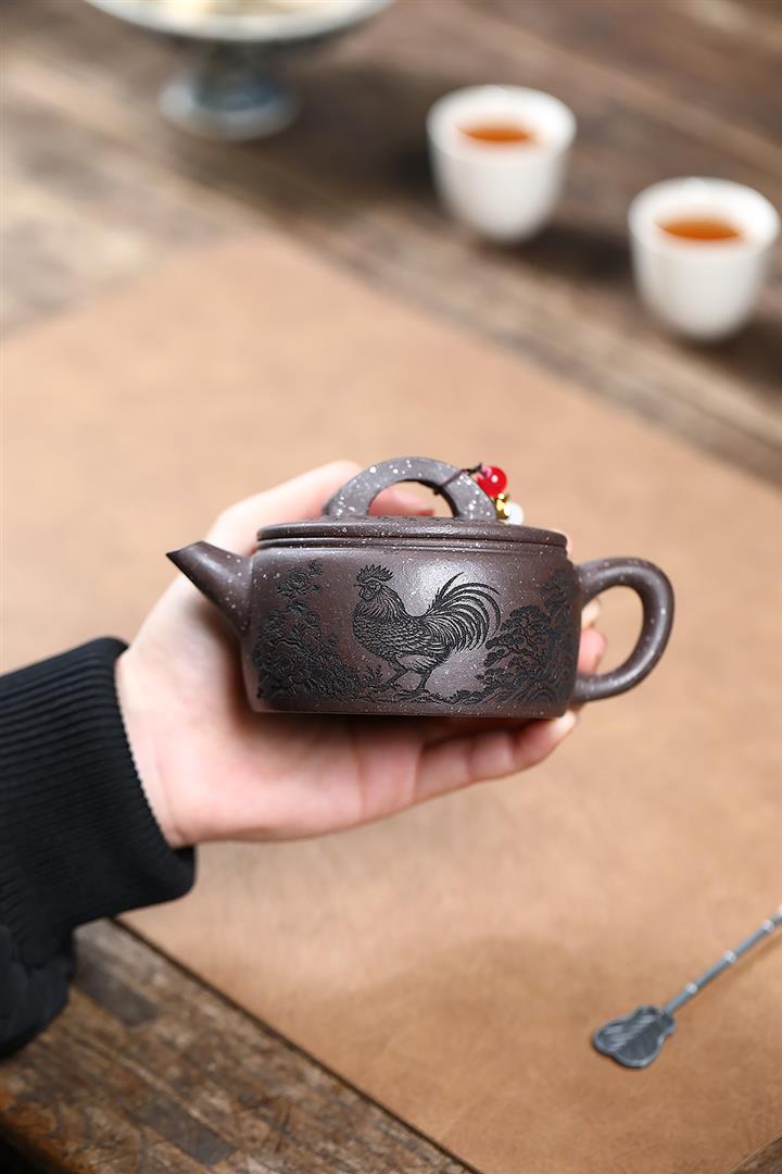 【作品介紹】此款壺形線條流暢,壺把,壺嘴,壺身壹氣呵成栩栩如生,是收藏把玩的好壺,泥料色澤古樸典雅,日久使用,漸露鋒芒,養成變化快,溫潤莊重,用其泡茶,使用的年代久,壺身就溫潤,泡出來的茶湯也就醇郁芳馨。