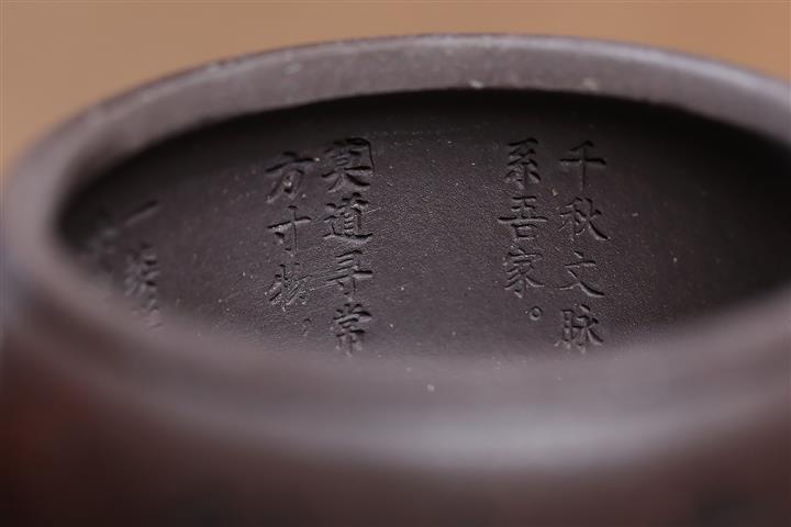 【泥料特點】砂土氣重,似淳實農民,日久使用,漸露鋒芒,養成變化,溫潤莊重。紫砂是壹種雙重氣孔結構的多孔性材質,氣孔微細,密度高。用紫砂壺沏茶,不失原味,且香不渙散,得茶之真香真味。紫砂使用越久,壺身色澤越發光亮照人,氣韻溫雅。紫砂壺長久使用器身會因撫摸擦拭,變得越發溫潤光澤。