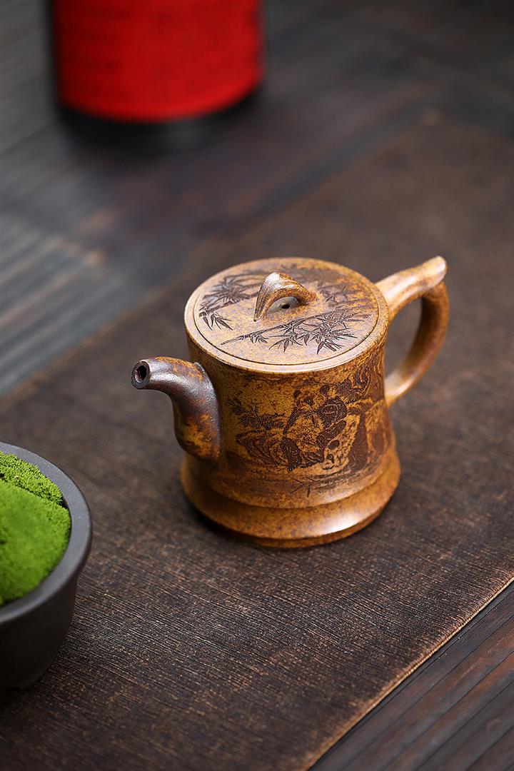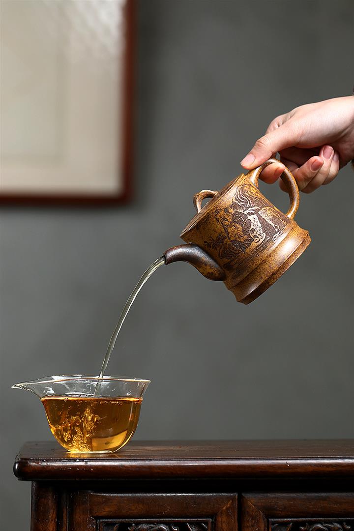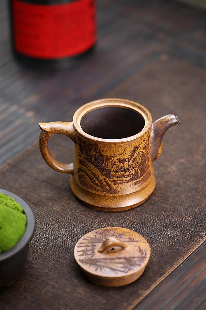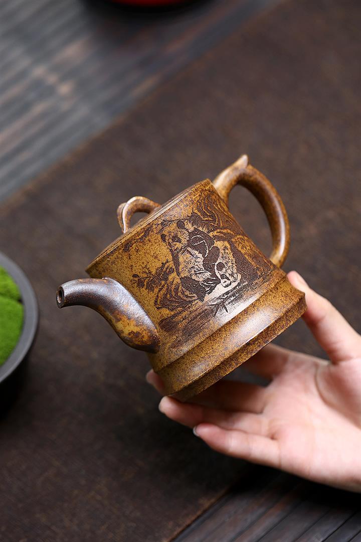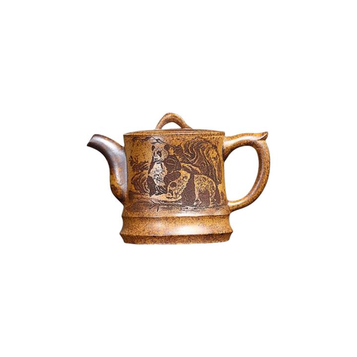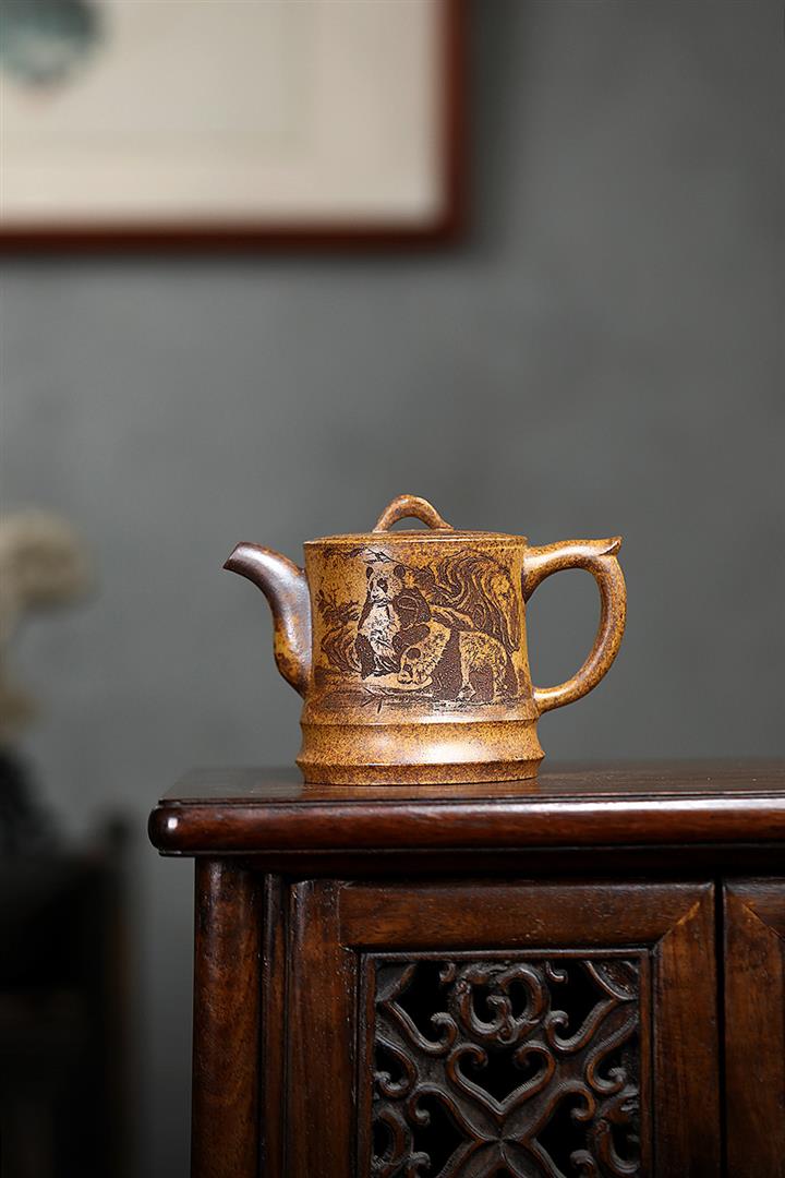 480cc原礦石黃泥滿刻萬馬奔騰茶壺POT7973