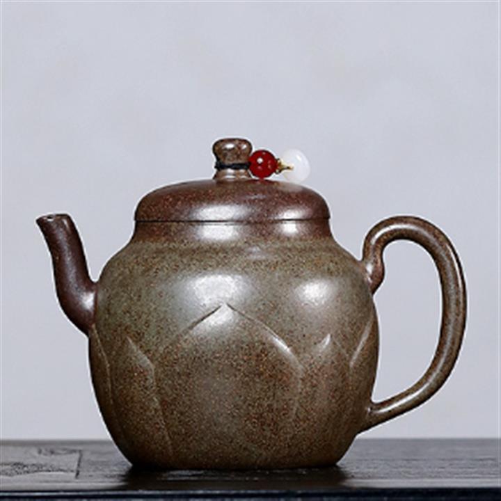 250cc原礦赤金朱泥石紋蓮華泡茶壺POT9126