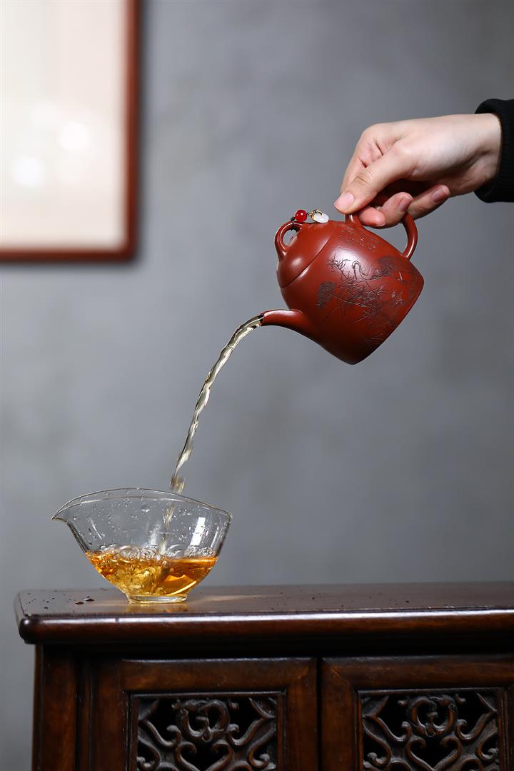 【泥料特點】砂土氣重,似淳實農民,日久使用,漸露鋒芒,養成變化,溫潤莊重。紫砂是壹種雙重氣孔結構的多孔性材質,氣孔微細,密度高。用紫砂壺沏茶,不失原味,且香不渙散,得茶之真香真味。紫砂使用越久,壺身色澤越發光亮照人,氣韻溫雅。紫砂壺長久使用器身會因撫摸擦拭,變得越發溫潤光澤。