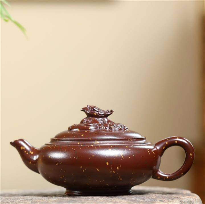 175cc原礦朱泥大紅袍灑金小潘壺泡茶壺POT9390