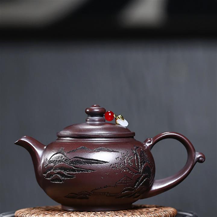 230cc原礦紫泥刻繪山水寒江泡茶壺POT9476