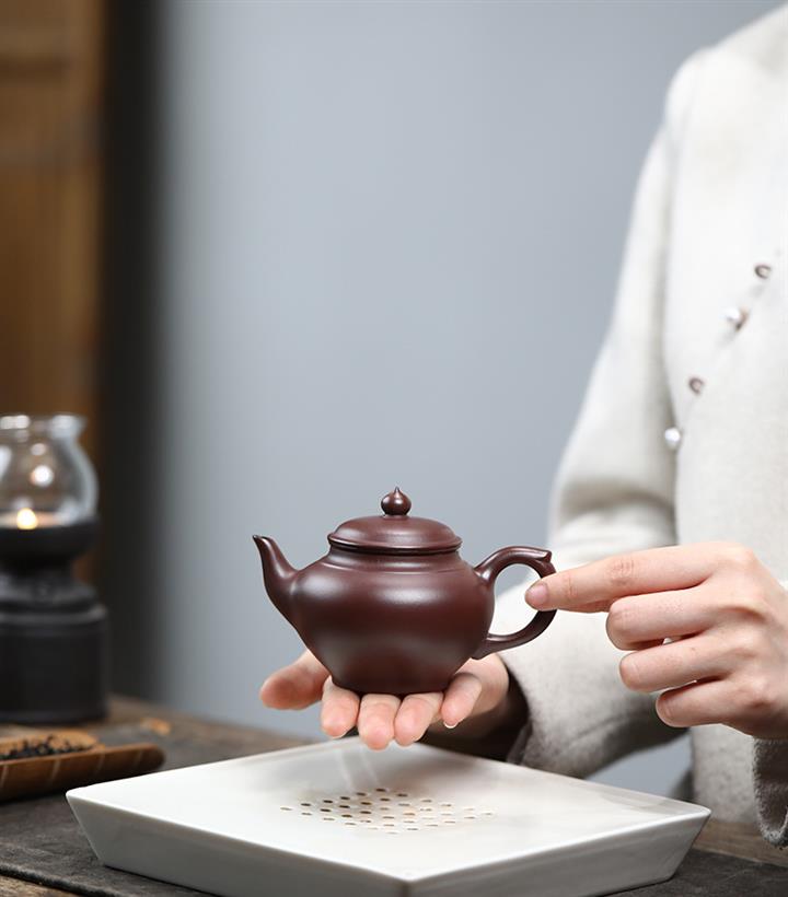 【泥料特點】砂土氣重,似淳實農民,日久使用,漸露鋒芒,養成變化,溫潤莊重。紫砂是壹種雙重氣孔結構的多孔性材質,氣孔微細,密度高。用紫砂壺沏茶,不失原味,且香不渙散,得茶之真香真味。紫砂使用越久,壺身色澤越發光亮照人,氣韻溫雅。紫砂壺長久使用器身會因撫摸擦拭,變得越發溫潤光澤。