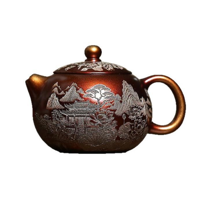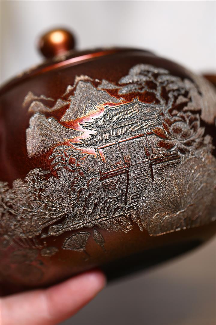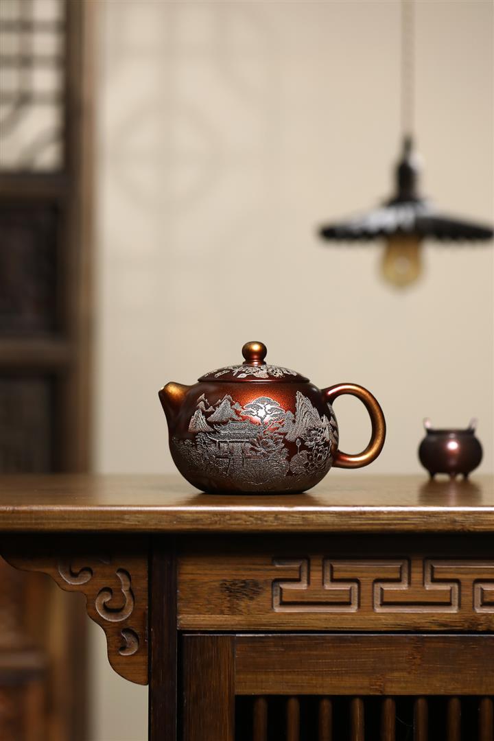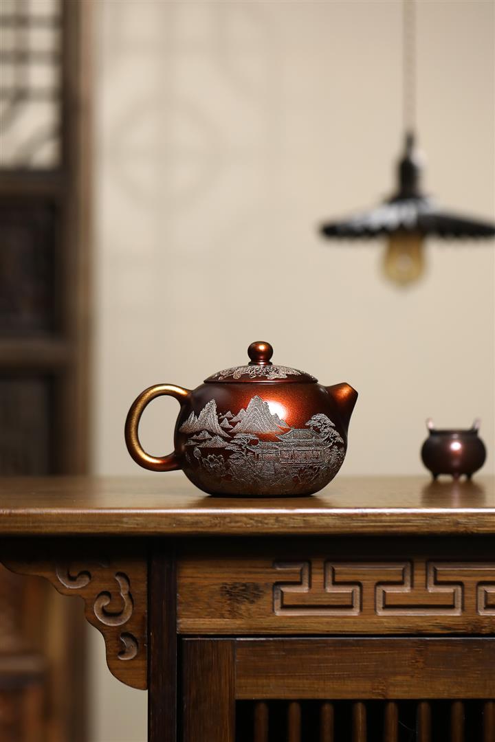 原礦大紅袍描金提梁紫砂壺POT4835