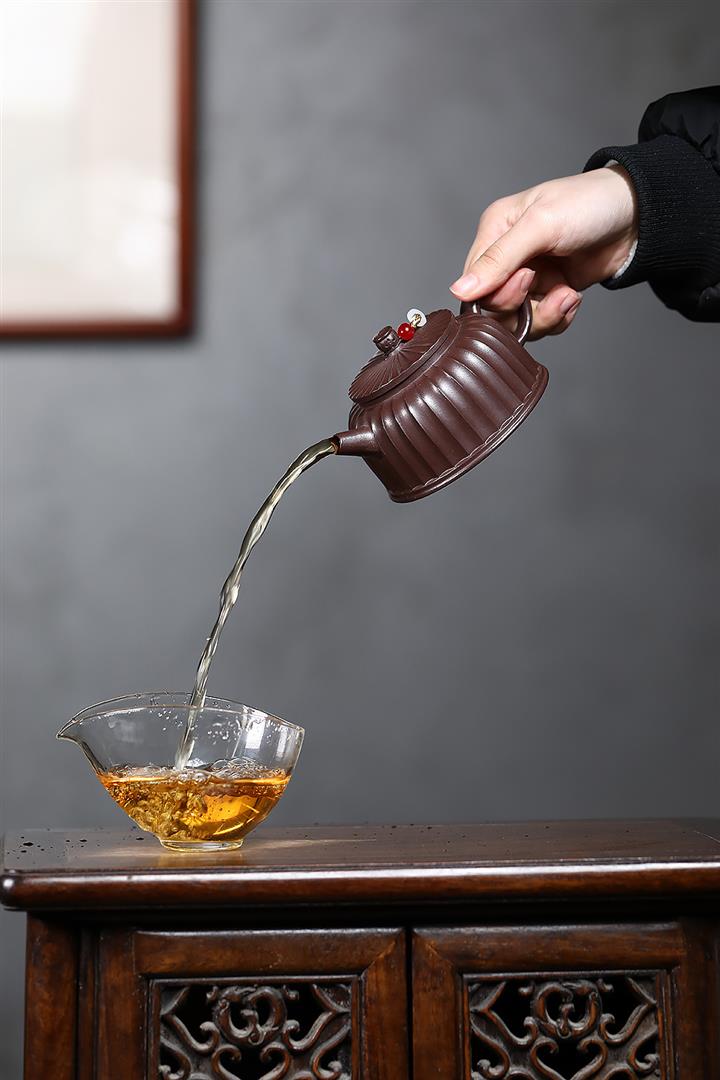 250cc原礦紫泥鏤空筋紋德鐘泡茶壺POT9417