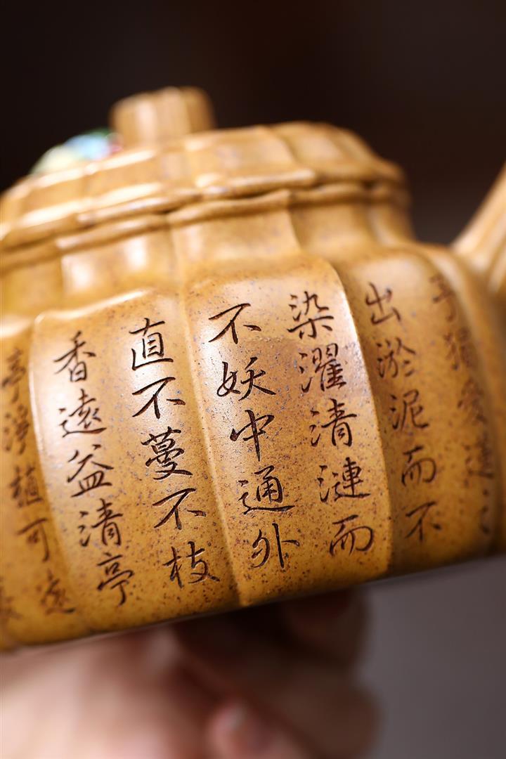 极品白玉段泥竹节六方紫砂壺POT4733