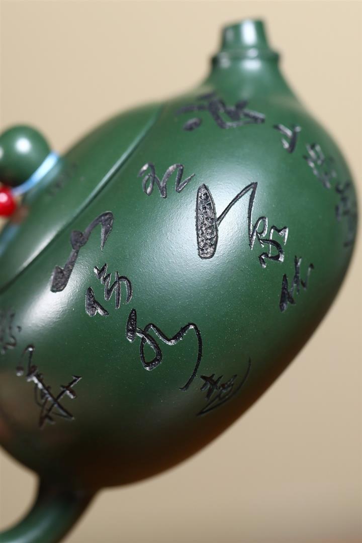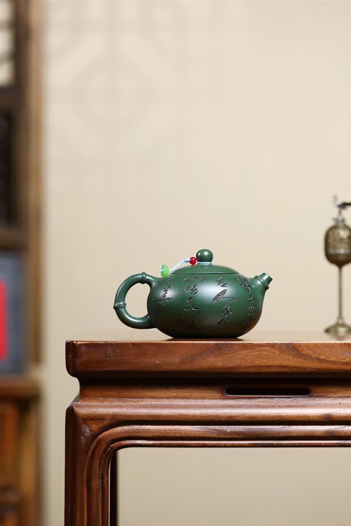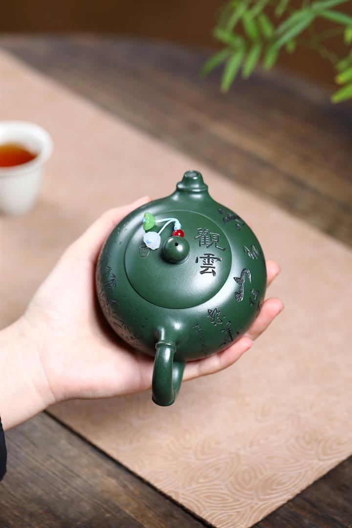 220cc原礦綠泥刻繪荷趣明爐茶壺POT8498