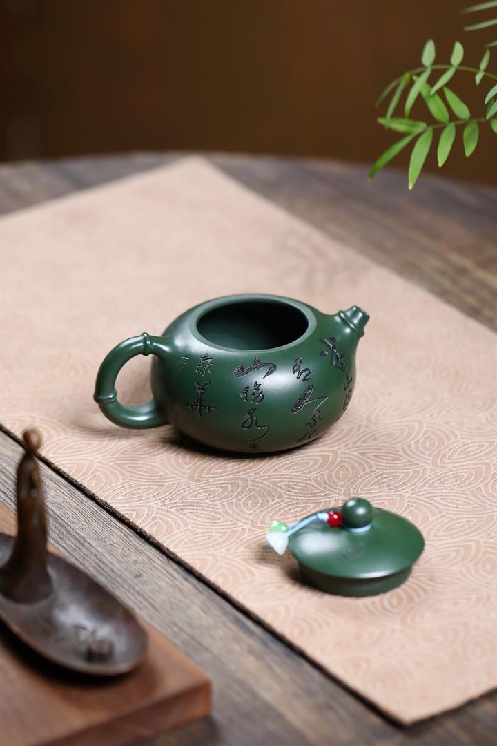 250cc原礦綠泥竹林清影泡茶壺POT9419