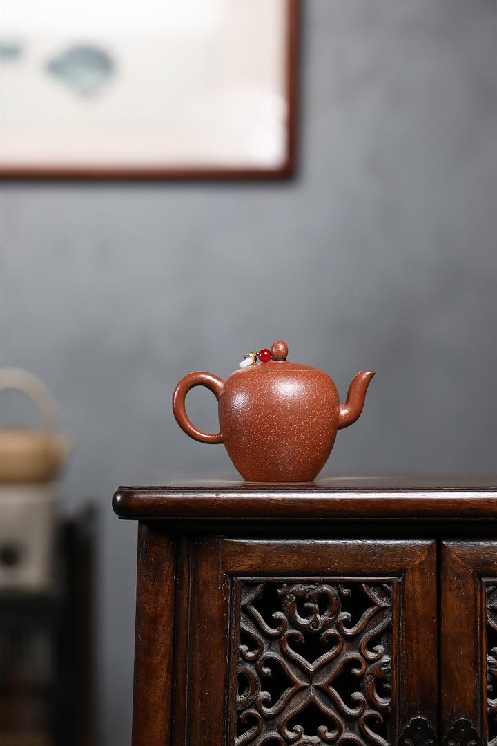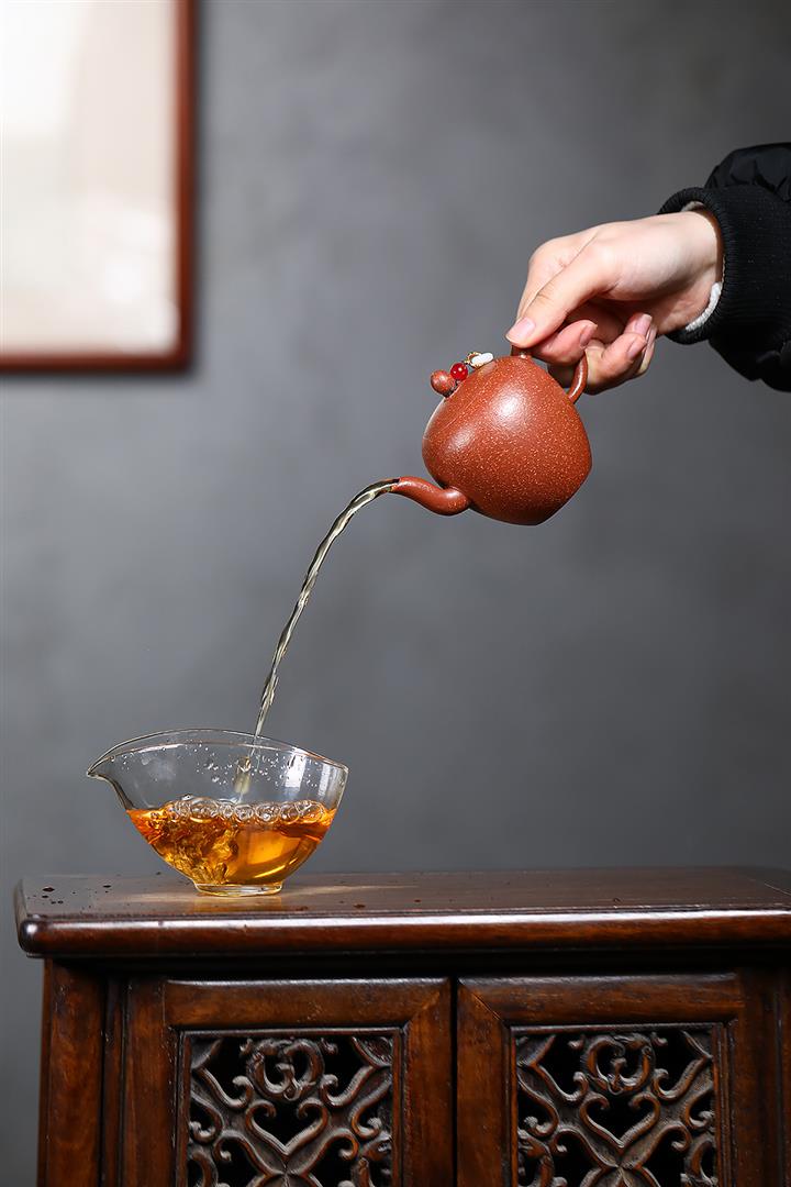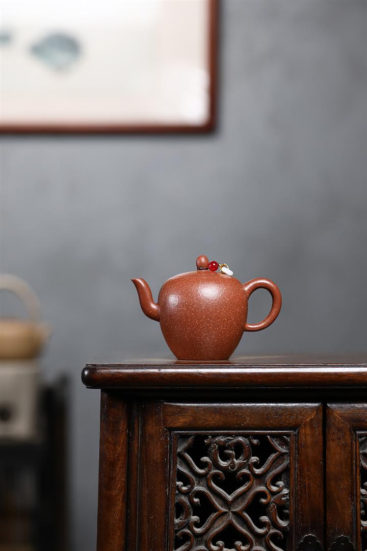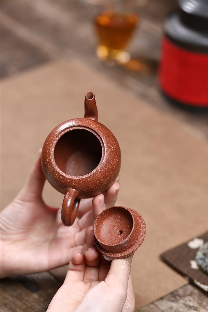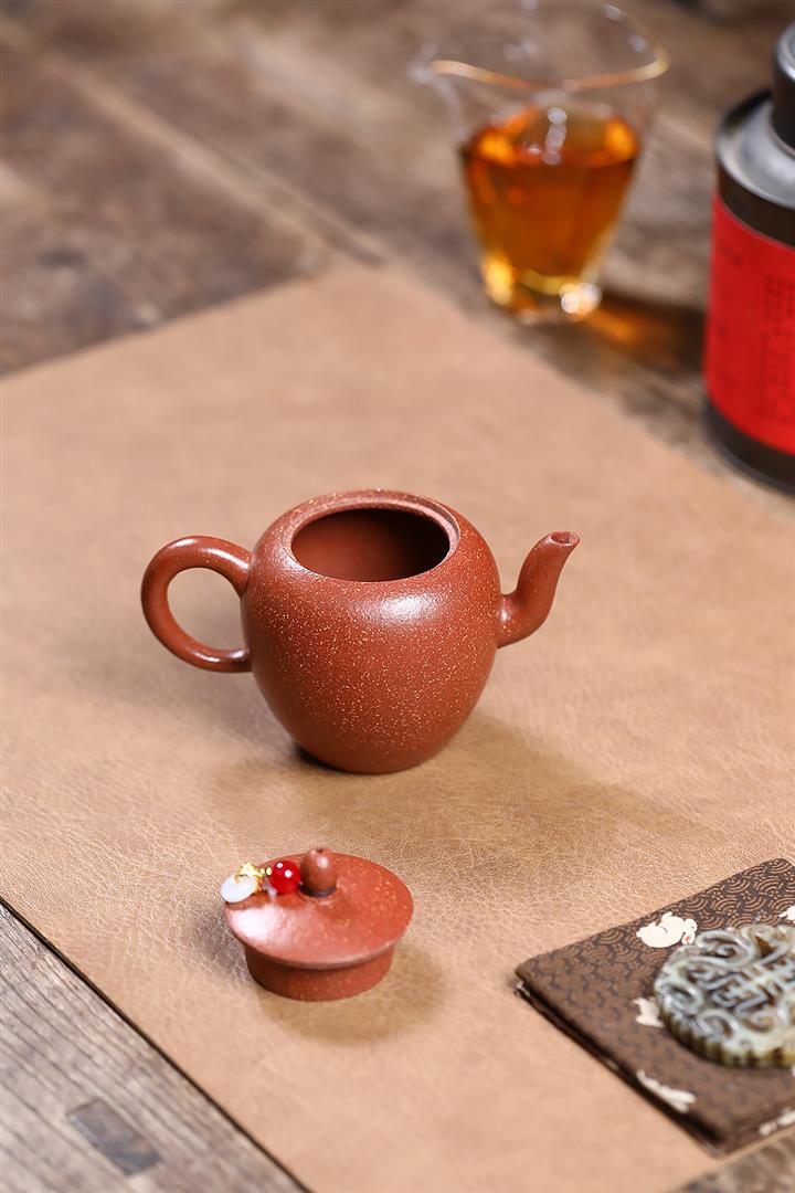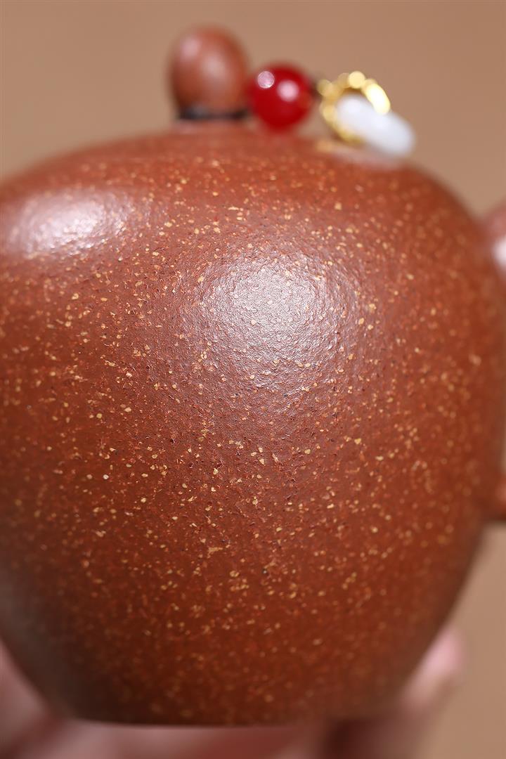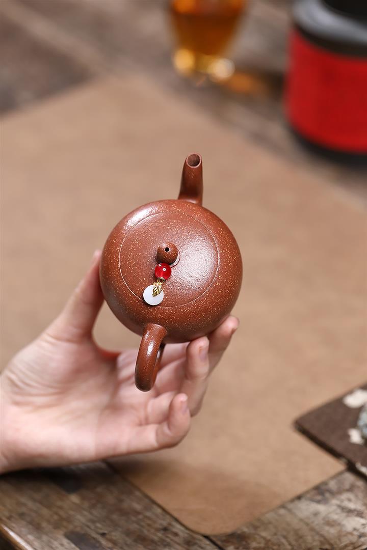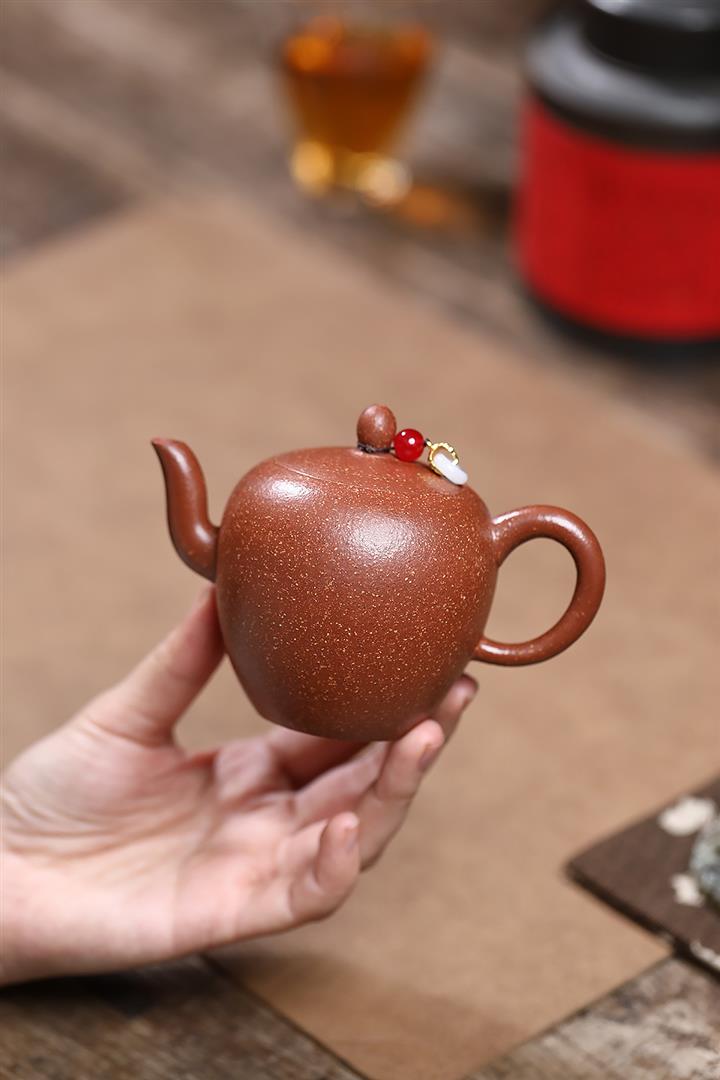 原礦朱泥全手工筋紋如意茶壺POT6667