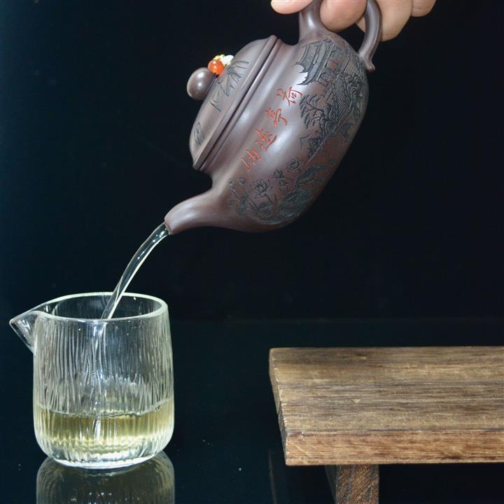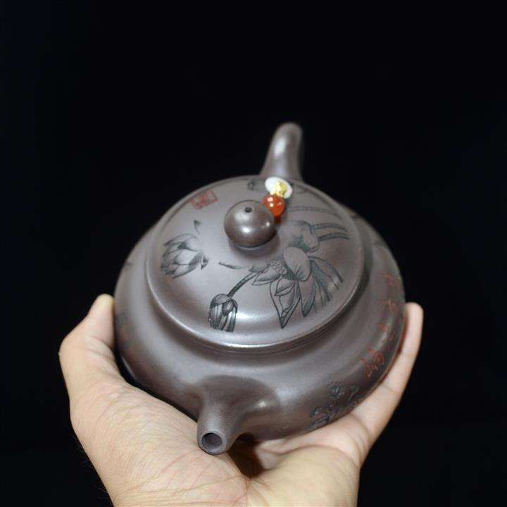 340cc原礦紫泥刻繪山水仿古泡茶壺POT9444