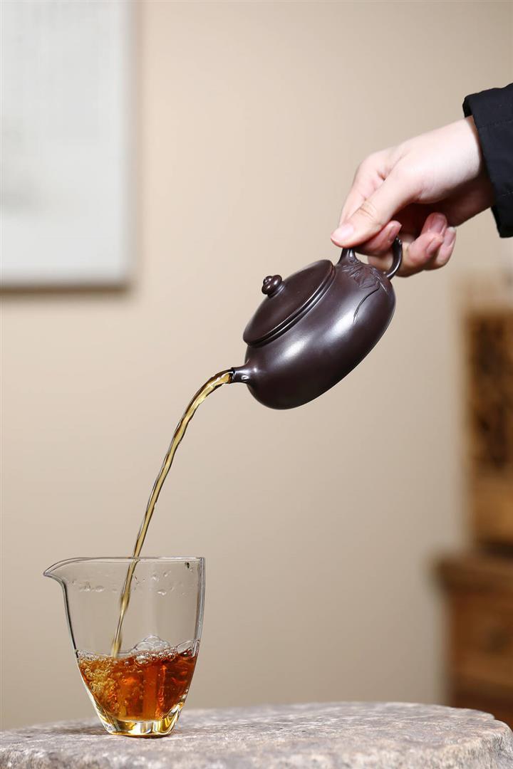 【泥料特點】砂土氣重,似淳實農民,日久使用,漸露鋒芒,養成變化,溫潤莊重。紫砂是壹種雙重氣孔結構的多孔性材質,氣孔微細,密度高。用紫砂壺沏茶,不失原味,且香不渙散,得茶之真香真味。紫砂使用越久,壺身色澤越發光亮照人,氣韻溫雅。紫砂壺長久使用器身會因撫摸擦拭,變得越發溫潤光澤。