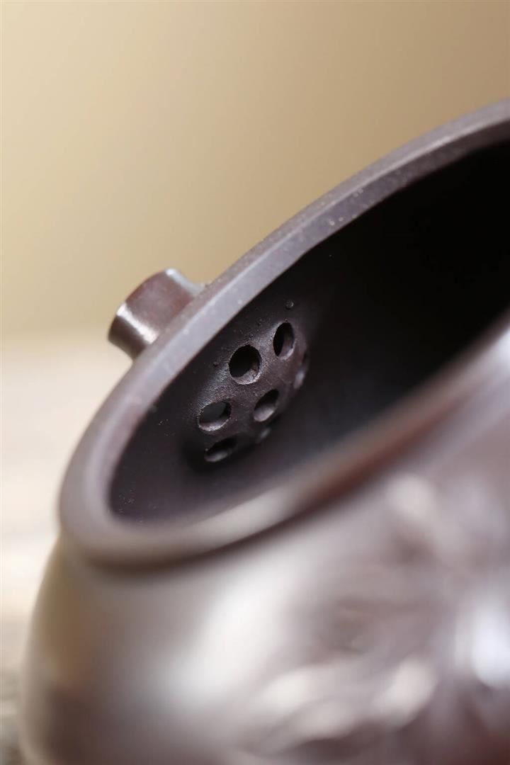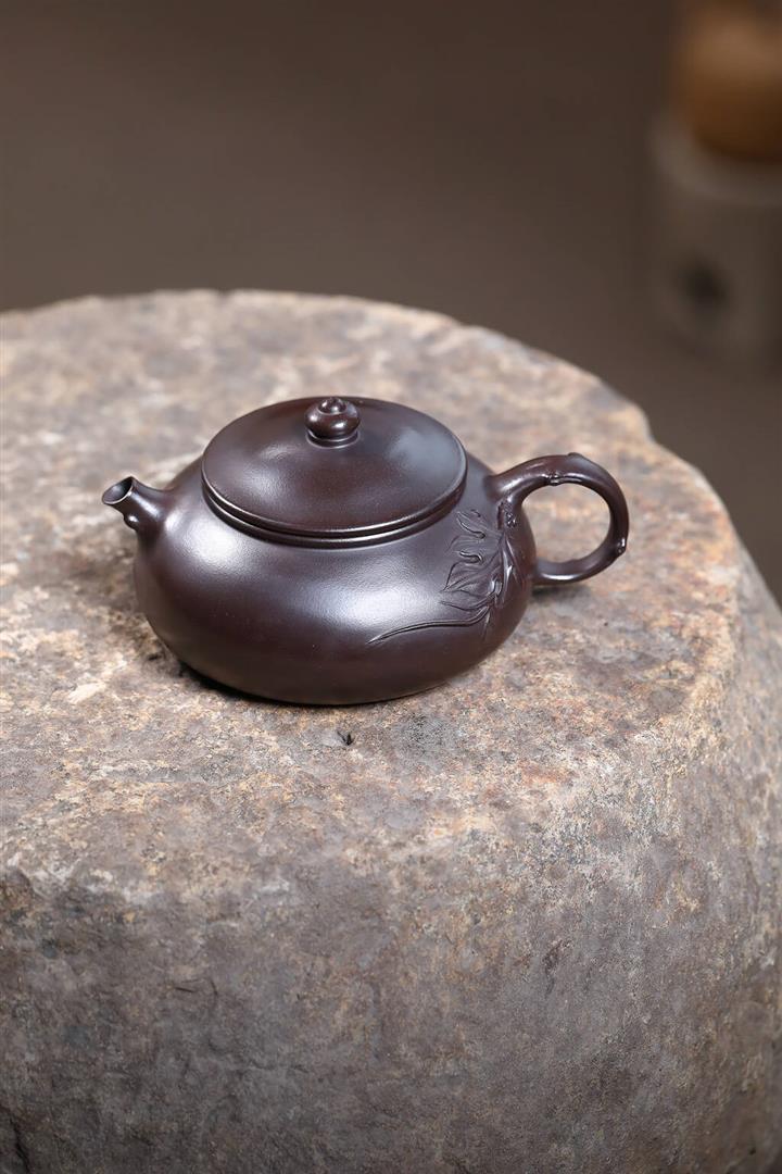 330cc原礦墨綠泥滿刻如意清荷茶壺POT8301