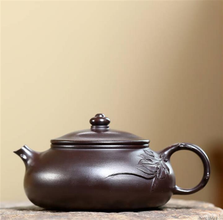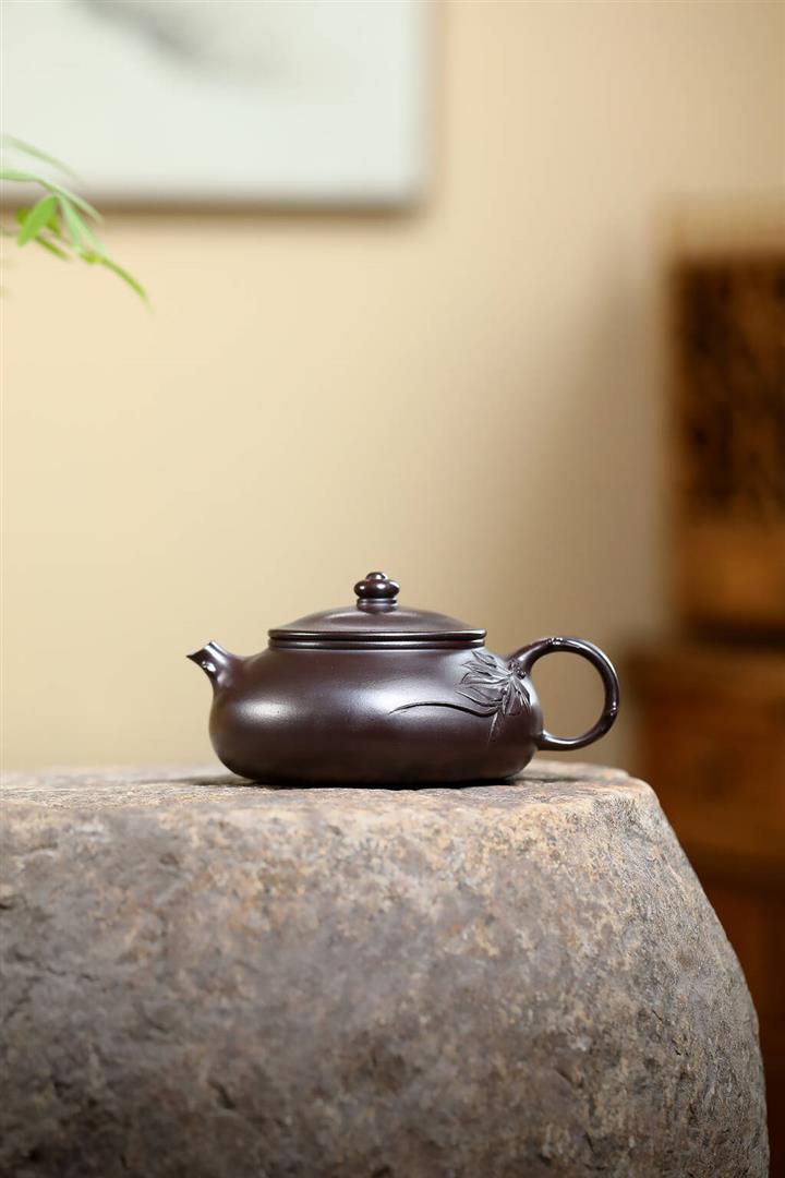 350cc原礦墨綠泥通身刻竹之清雅茶壺POT8302