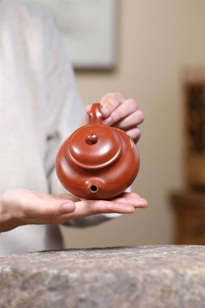 【泥料特點】砂土氣重,似淳實農民,日久使用,漸露鋒芒,養成變化,溫潤莊重。紫砂是壹種雙重氣孔結構的多孔性材質,氣孔微細,密度高。用紫砂壺沏茶,不失原味,且香不渙散,得茶之真香真味。紫砂使用越久,壺身色澤越發光亮照人,氣韻溫雅。紫砂壺長久使用器身會因撫摸擦拭,變得越發溫潤光澤。