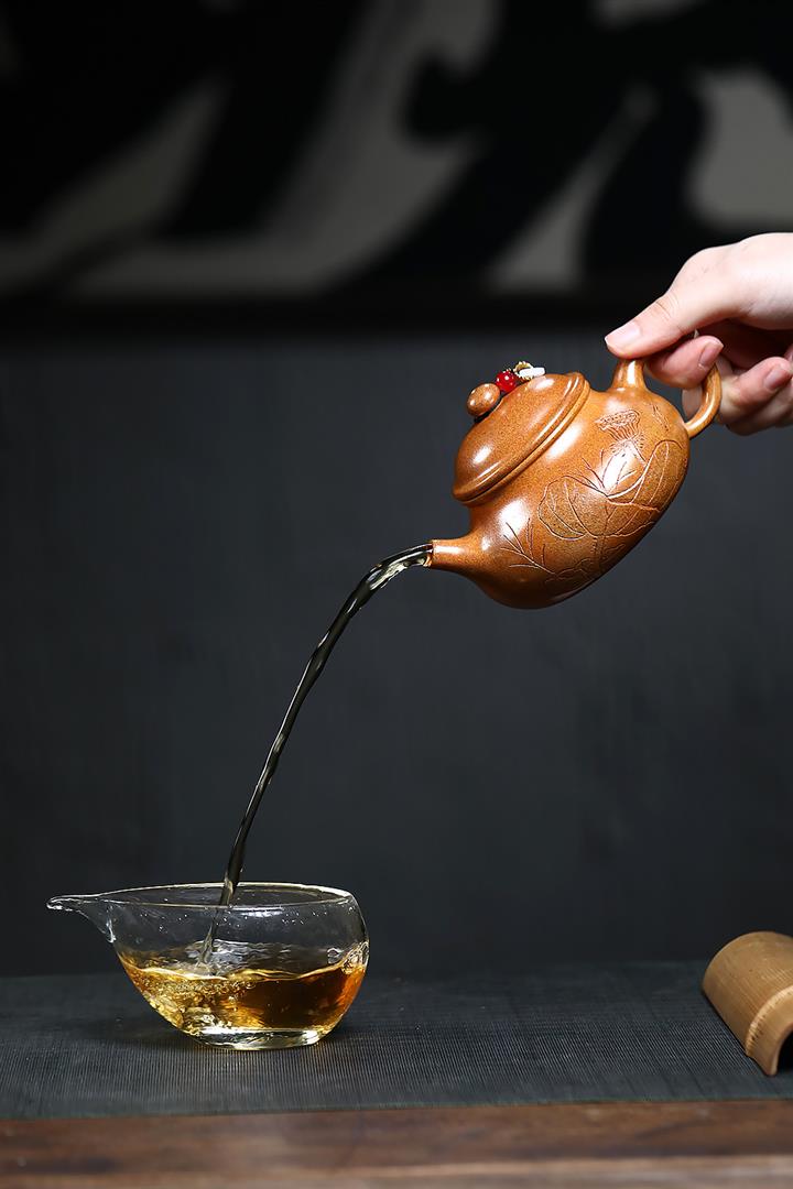 【泥料特點】砂土氣重,似淳實農民,日久使用,漸露鋒芒,養成變化,溫潤莊重。紫砂是壹種雙重氣孔結構的多孔性材質,氣孔微細,密度高。用紫砂壺沏茶,不失原味,且香不渙散,得茶之真香真味。紫砂使用越久,壺身色澤越發光亮照人,氣韻溫雅。紫砂壺長久使用器身會因撫摸擦拭,變得越發溫潤光澤。