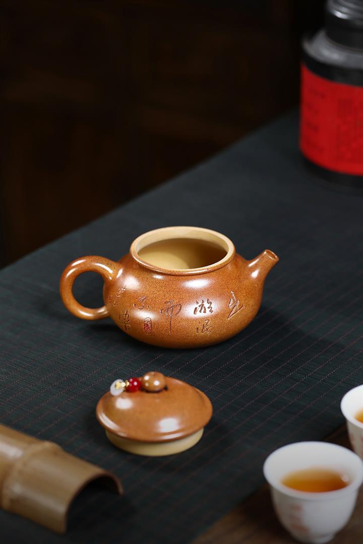 原礦玄鐵石黃喜上眉梢高龍蛋茶壺POT7549