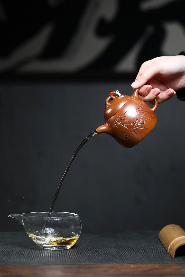 【作品介紹】此款壺形線條流暢,壺把,壺嘴,壺身壹氣呵成栩栩如生,是收藏把玩的好壺,泥料色澤古樸典雅,日久使用,漸露鋒芒,養成變化快,溫潤莊重,用其泡茶,使用的年代久,壺身就溫潤,泡出來的茶湯也就醇郁芳馨。