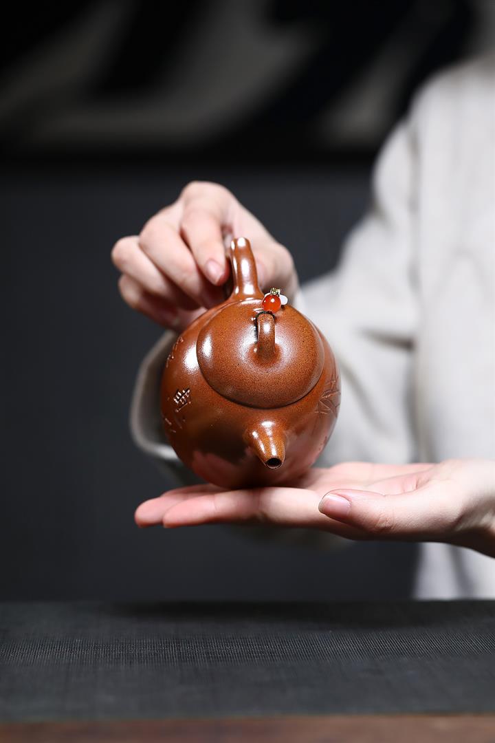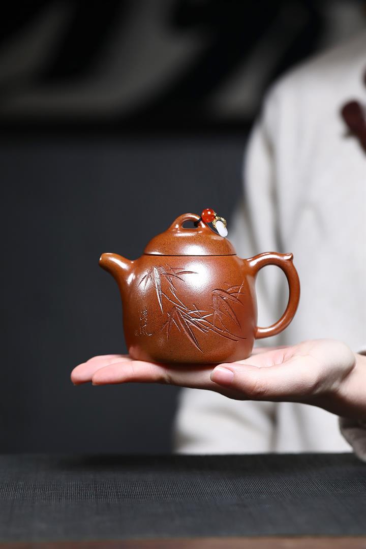 朱泥大紅袍掇球紫砂壺POT4661