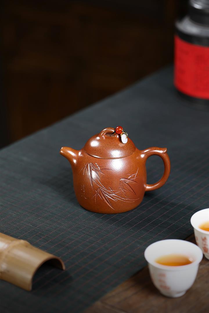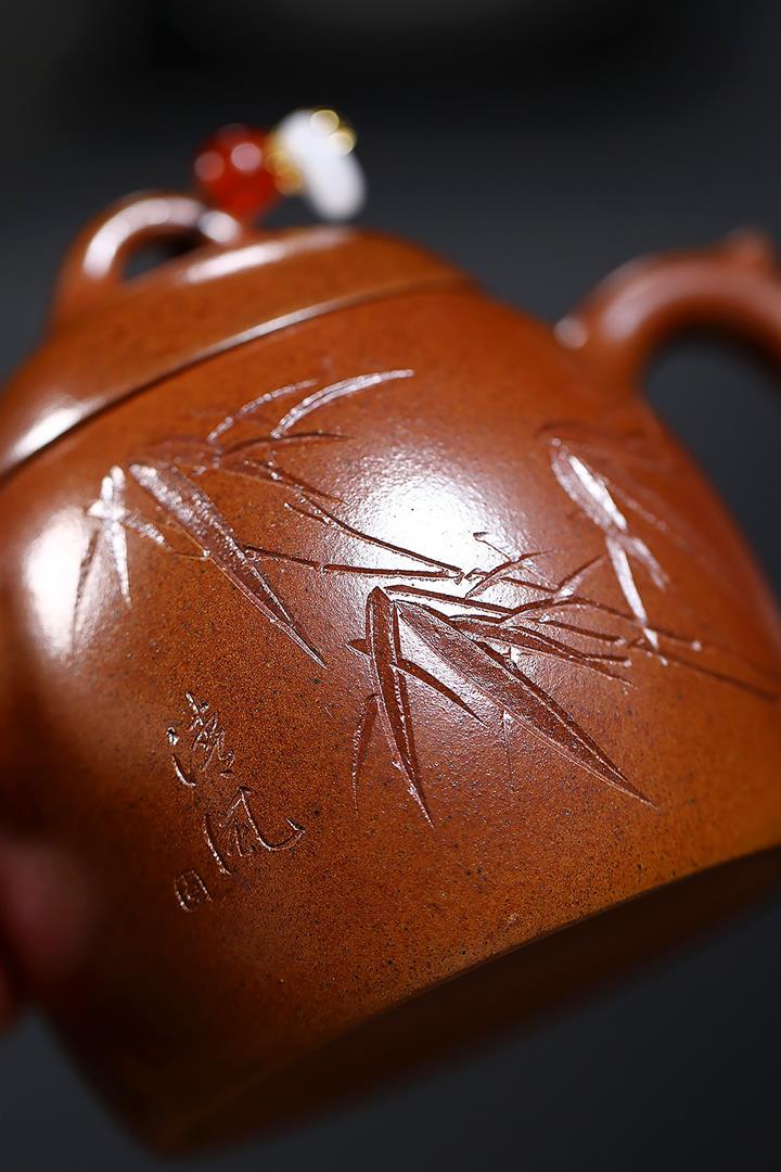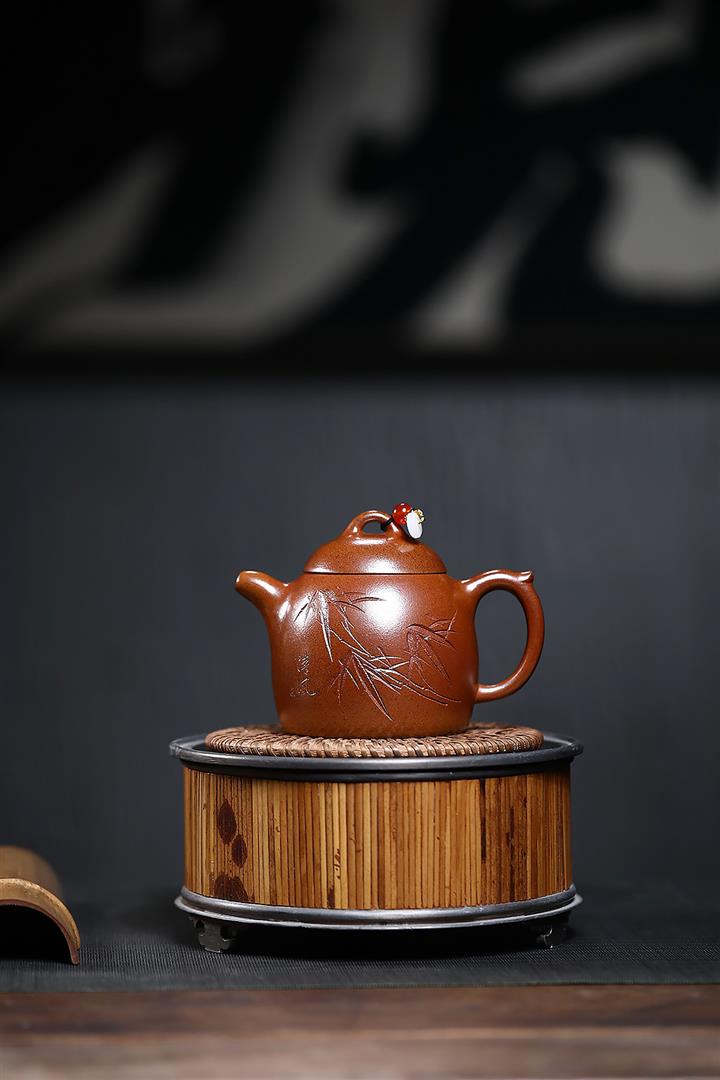 220cc原礦段泥火雲燒竹影秦權泡茶壺POT9469