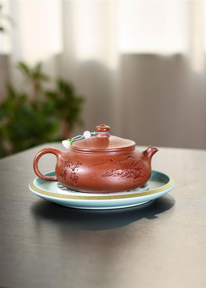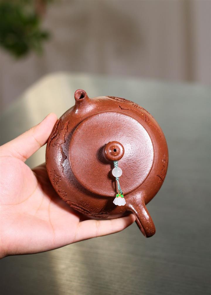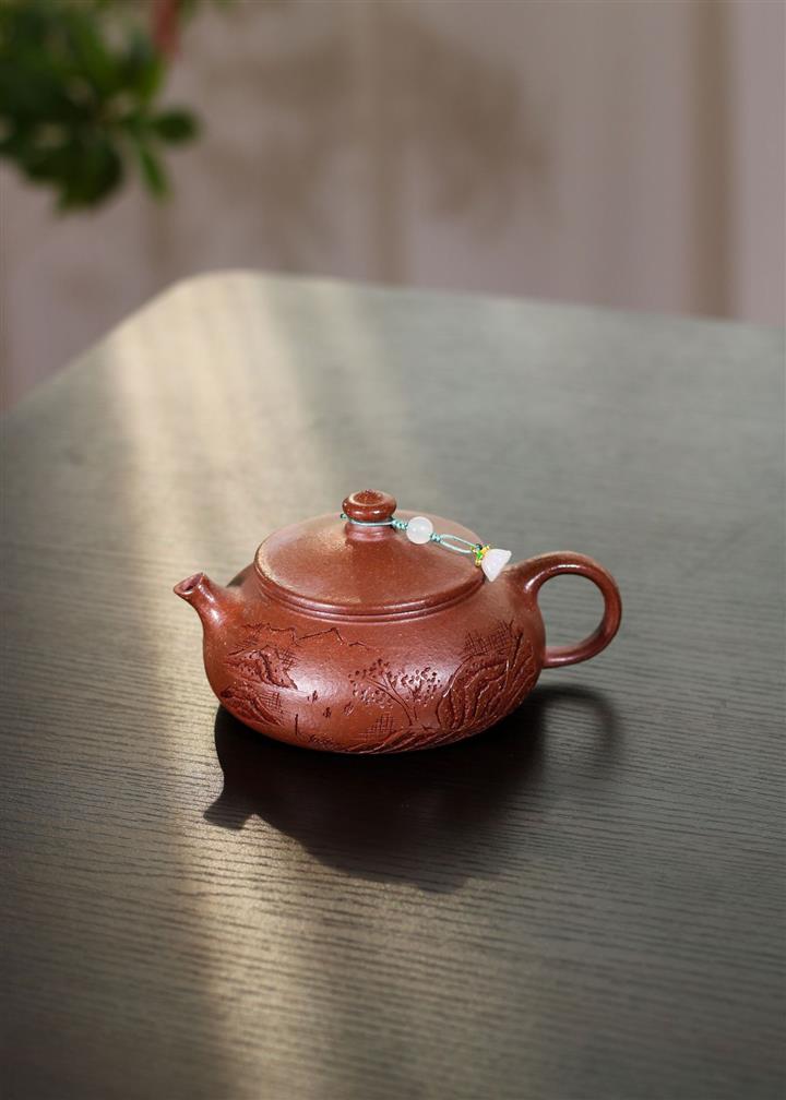220cc原礦龍血砂刻梅花茶壺POT8902