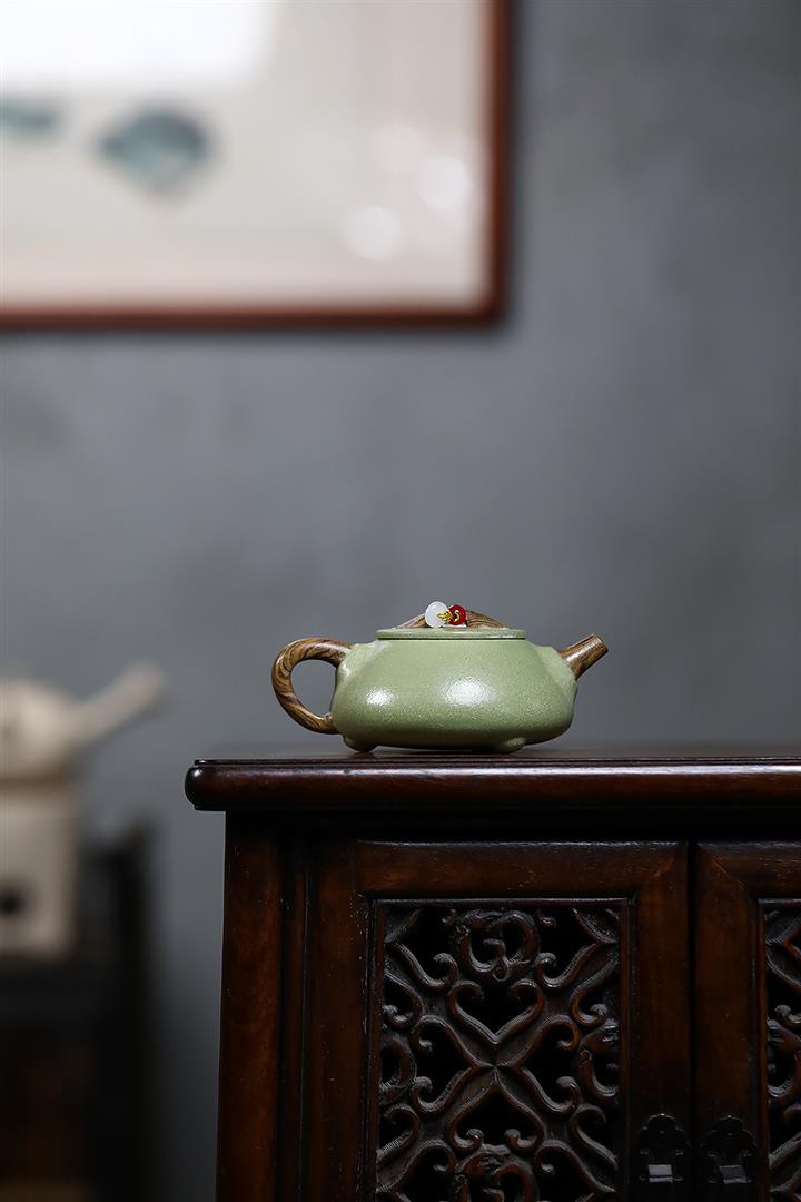 320cc原礦綠泥滿刻秋實秋趣茶壺POT8168