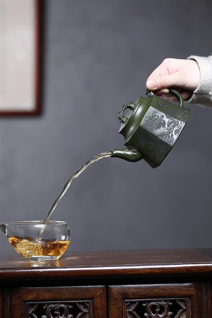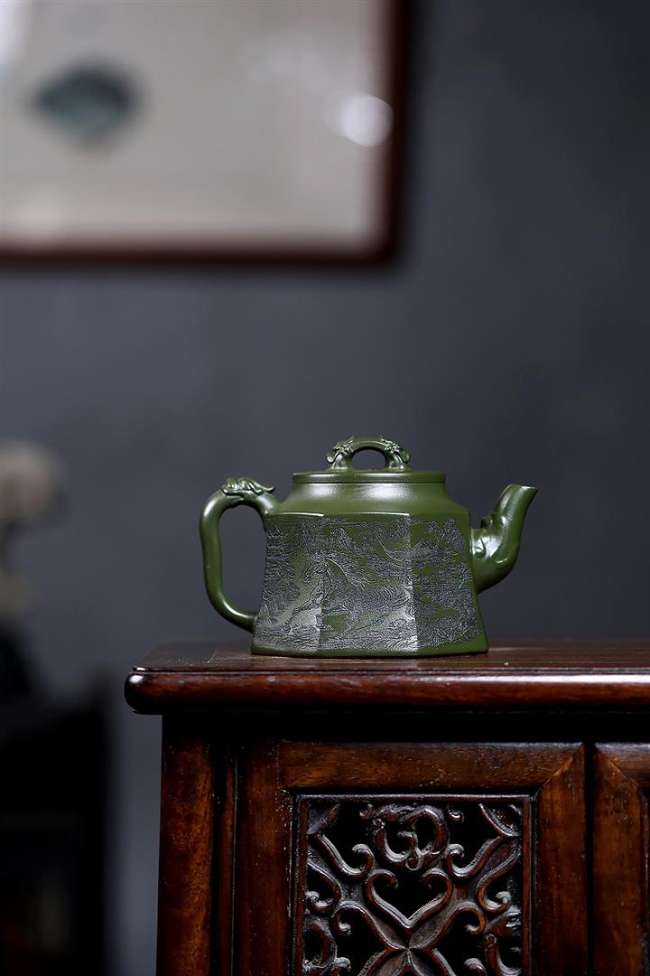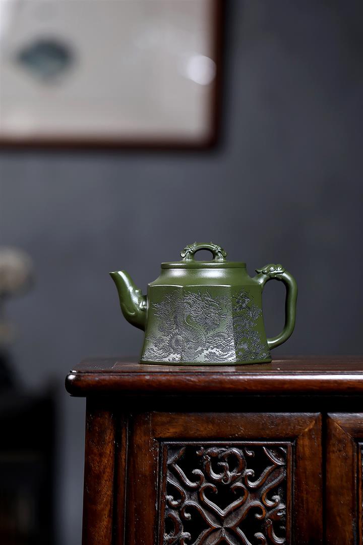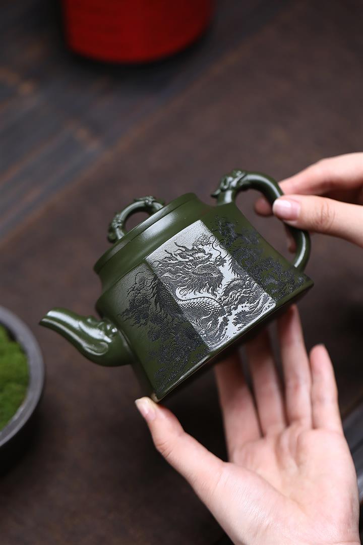 350cc原礦民國綠泥八方龍權泡茶壺POT9485