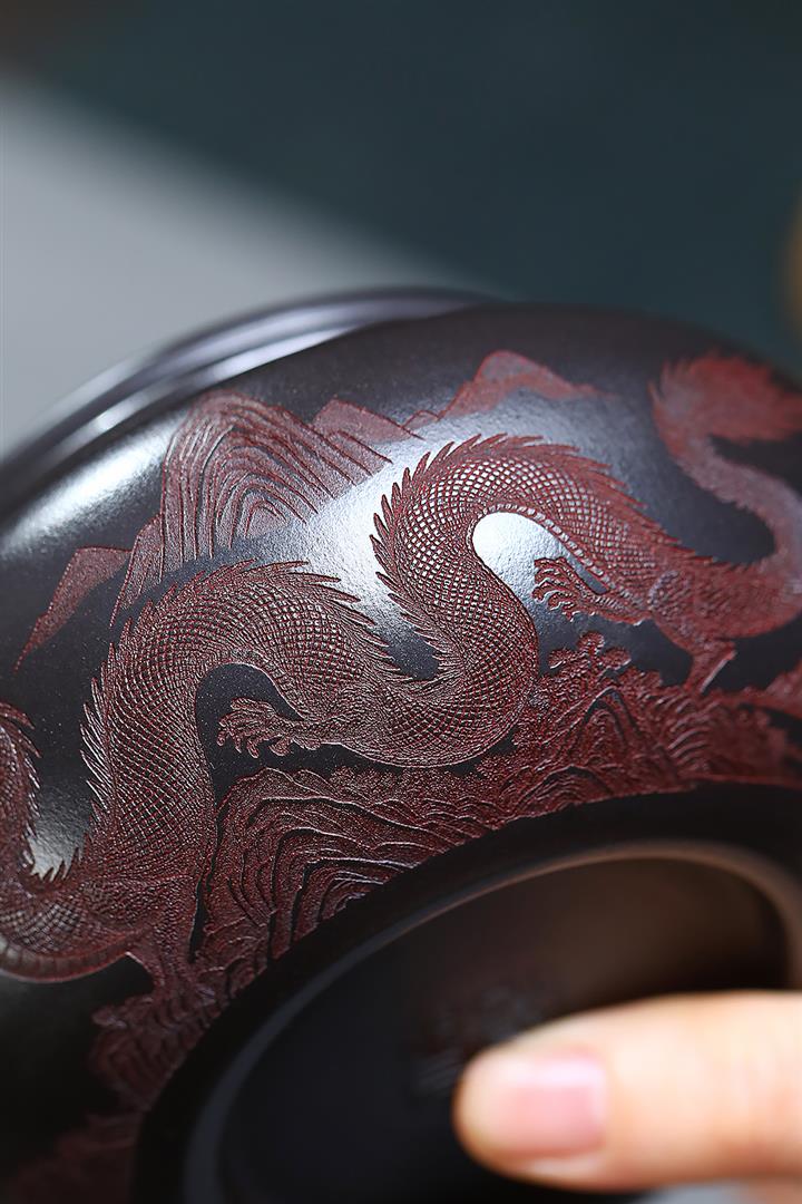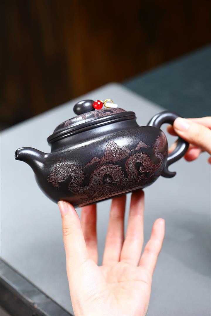 400cc原礦玄鐵石黃遊龍仿古泡茶壺POT9487