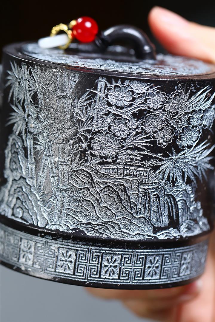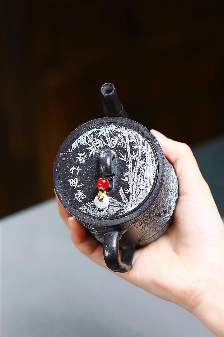 300cc原礦墨綠泥龍鳳呈祥漢瓦茶壺POT9428
