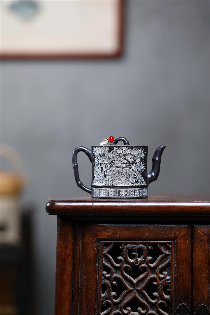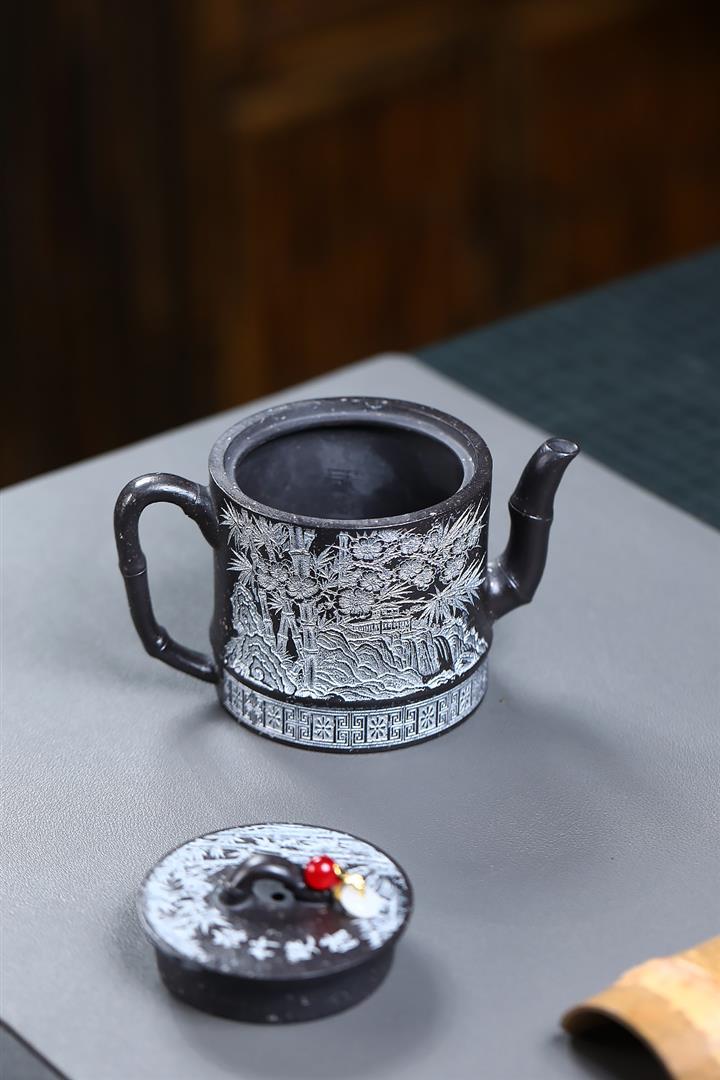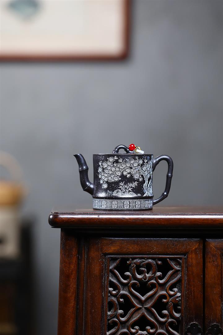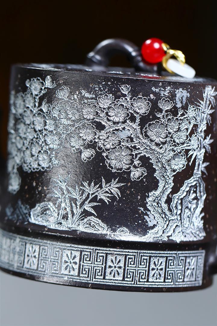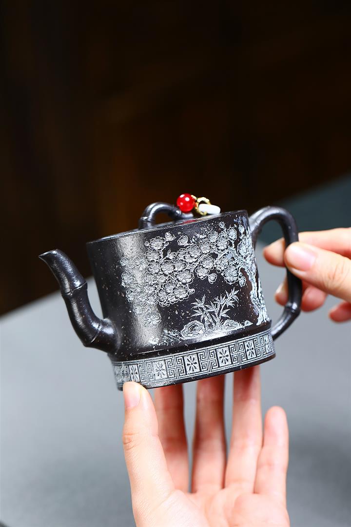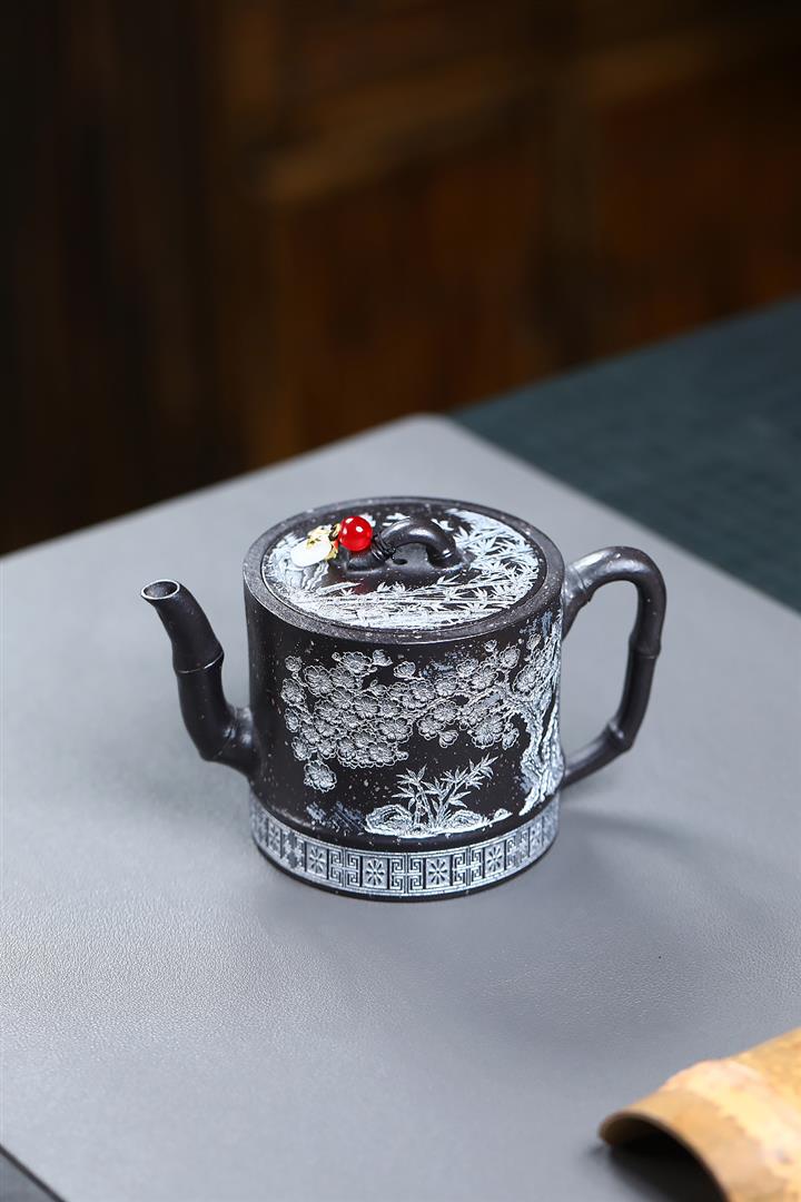 250cc原礦雪花泥梅竹雙清泡茶壺POT9488
