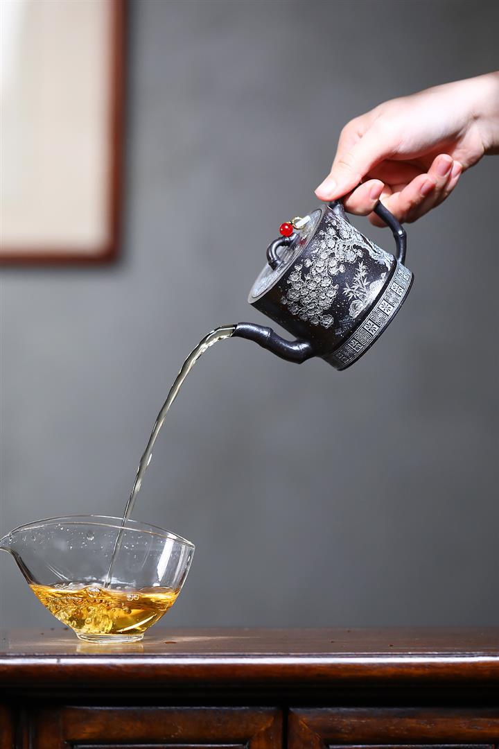 【泥料特點】砂土氣重,似淳實農民,日久使用,漸露鋒芒,養成變化,溫潤莊重。紫砂是壹種雙重氣孔結構的多孔性材質,氣孔微細,密度高。用紫砂壺沏茶,不失原味,且香不渙散,得茶之真香真味。紫砂使用越久,壺身色澤越發光亮照人,氣韻溫雅。紫砂壺長久使用器身會因撫摸擦拭,變得越發溫潤光澤。
