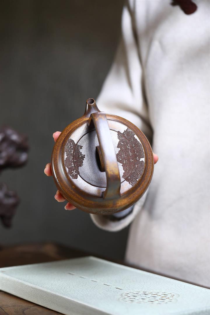 350cc龍窯高溫柴燒龍骨金砂提梁泡茶壺POT9503