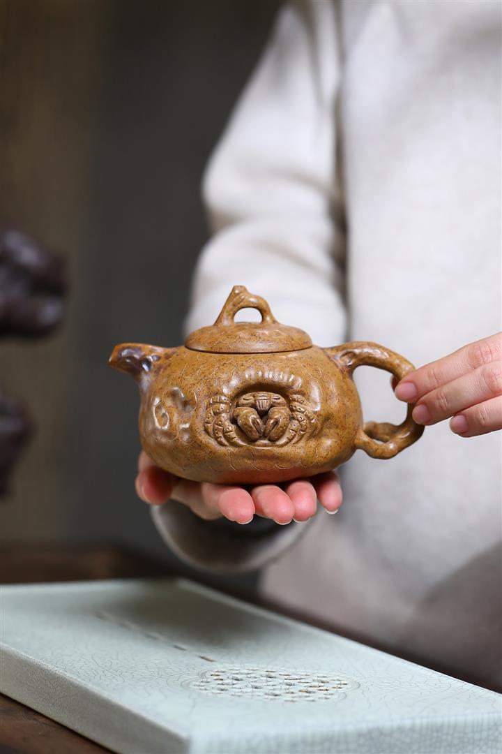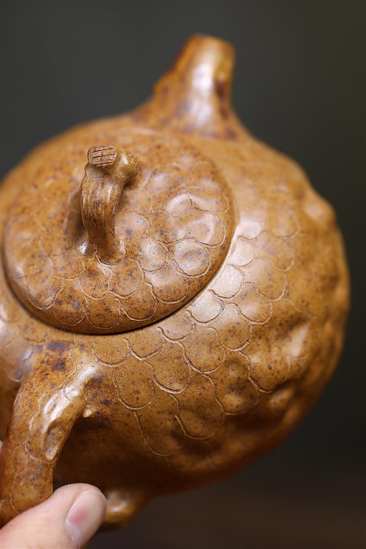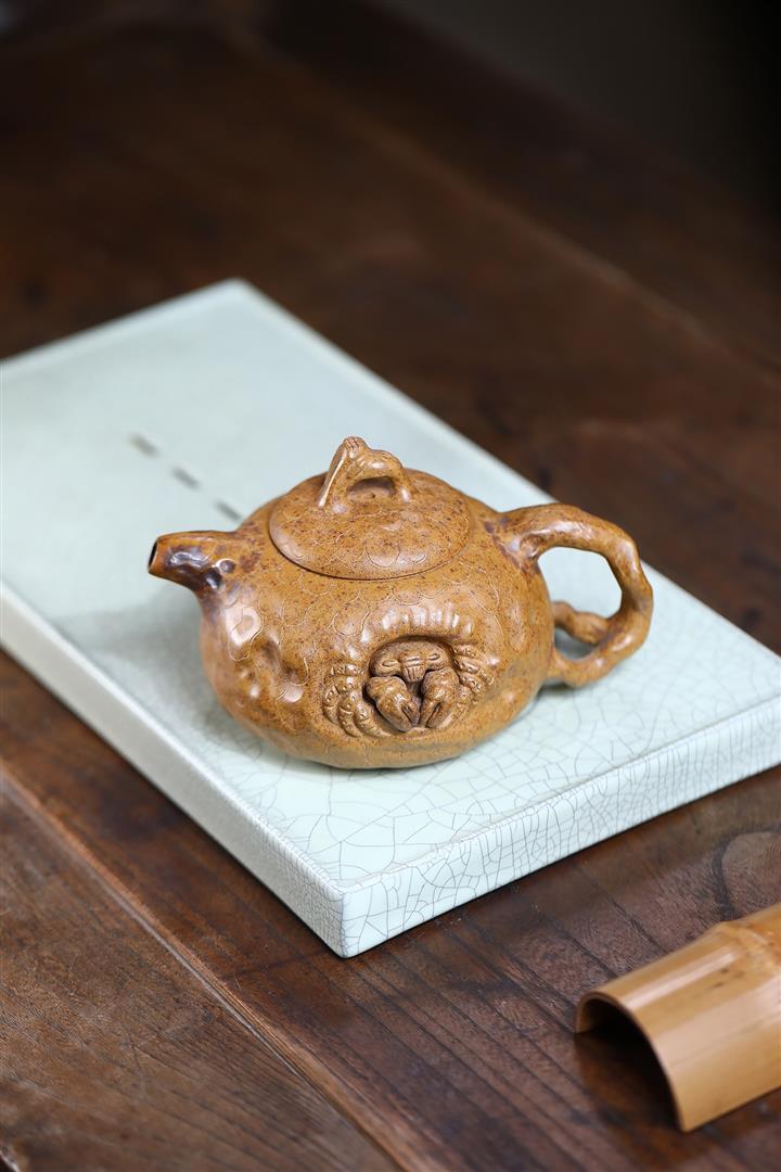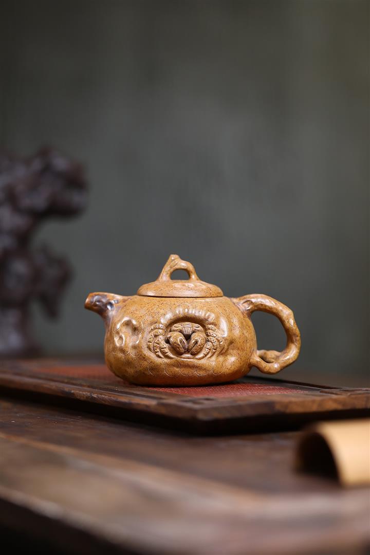 原礦石黃泥魚趣納瓢茶壺POT7717