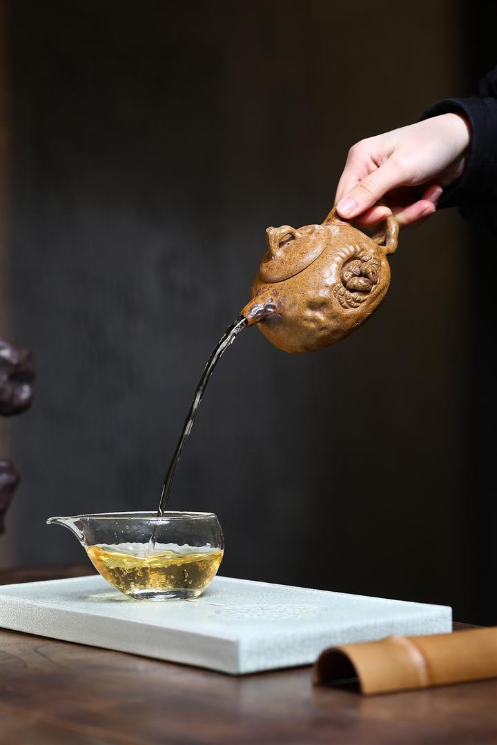 【泥料特點】砂土氣重,似淳實農民,日久使用,漸露鋒芒,養成變化,溫潤莊重。紫砂是壹種雙重氣孔結構的多孔性材質,氣孔微細,密度高。用紫砂壺沏茶,不失原味,且香不渙散,得茶之真香真味。紫砂使用越久,壺身色澤越發光亮照人,氣韻溫雅。紫砂壺長久使用器身會因撫摸擦拭,變得越發溫潤光澤。