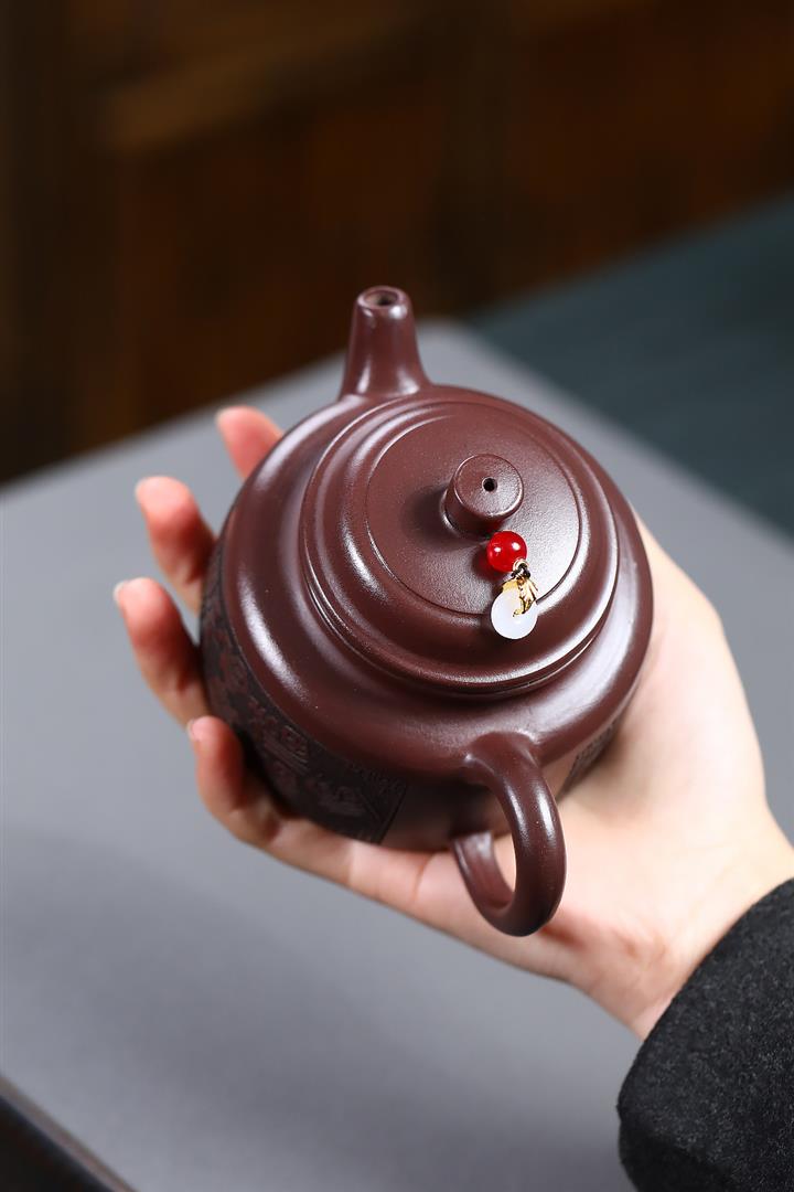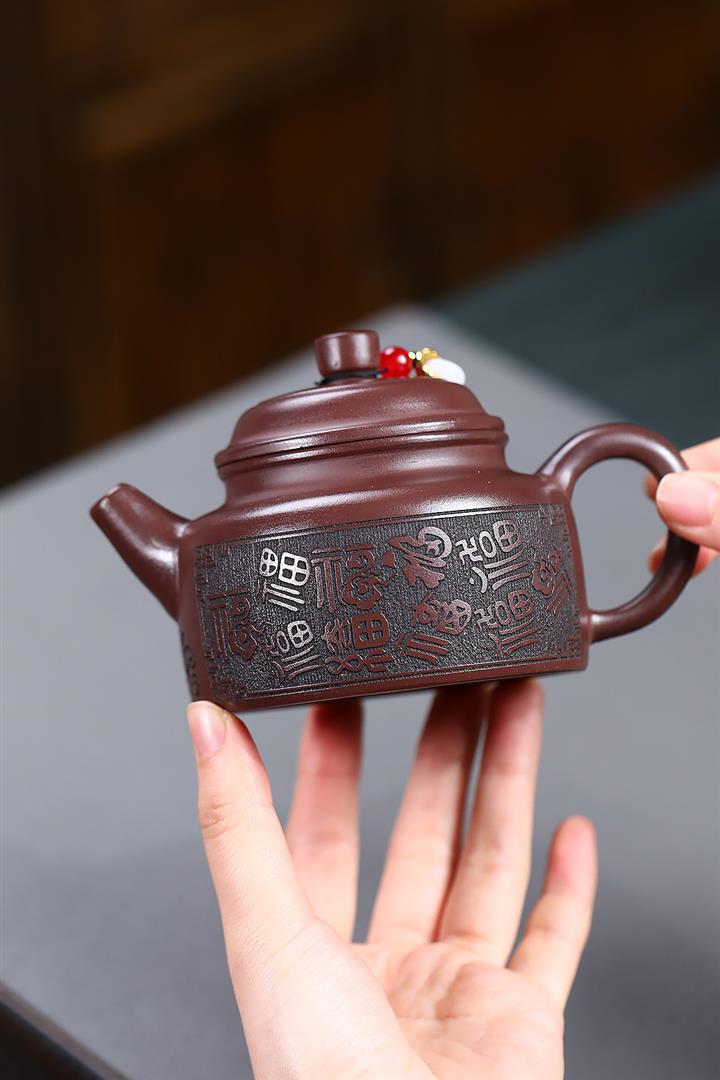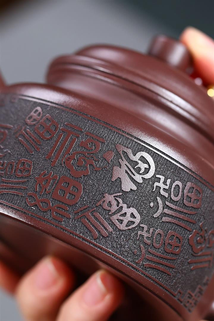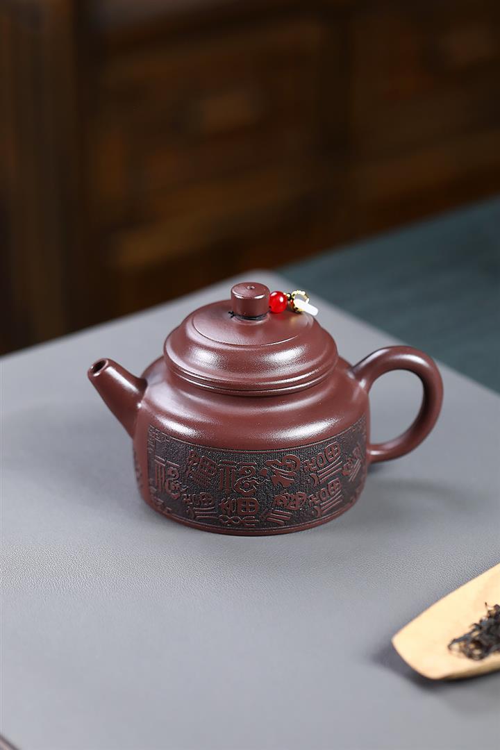 230cc原礦紫泥刻繪百福德鐘泡茶壺POT9529
