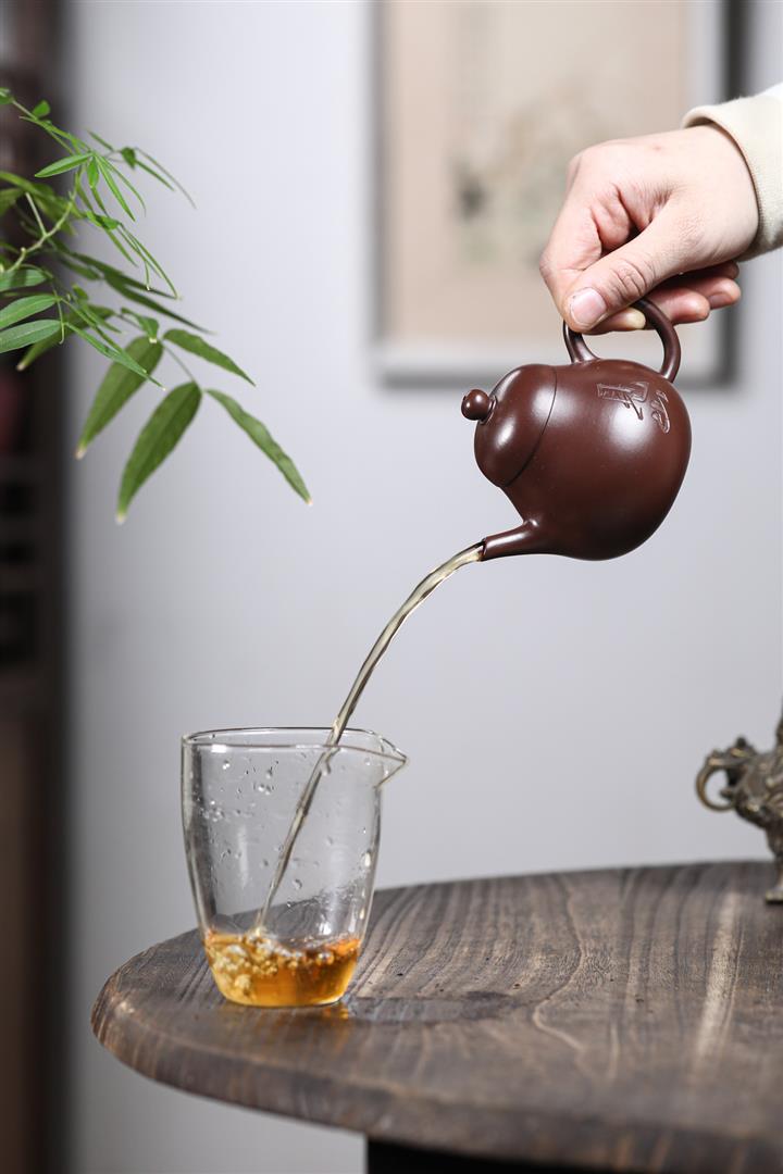 【泥料特點】砂土氣重,似淳實農民,日久使用,漸露鋒芒,養成變化,溫潤莊重。紫砂是壹種雙重氣孔結構的多孔性材質,氣孔微細,密度高。用紫砂壺沏茶,不失原味,且香不渙散,得茶之真香真味。紫砂使用越久,壺身色澤越發光亮照人,氣韻溫雅。紫砂壺長久使用器身會因撫摸擦拭,變得越發溫潤光澤。
