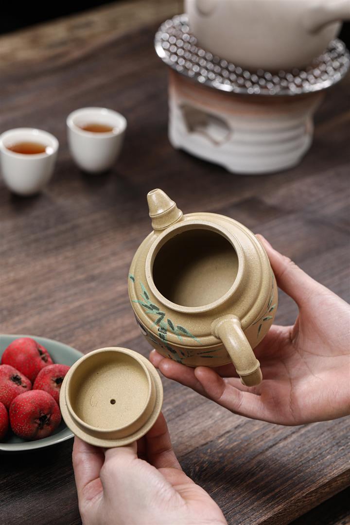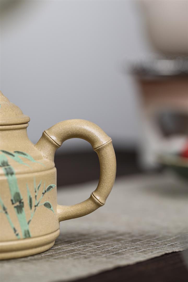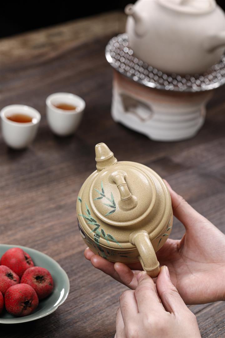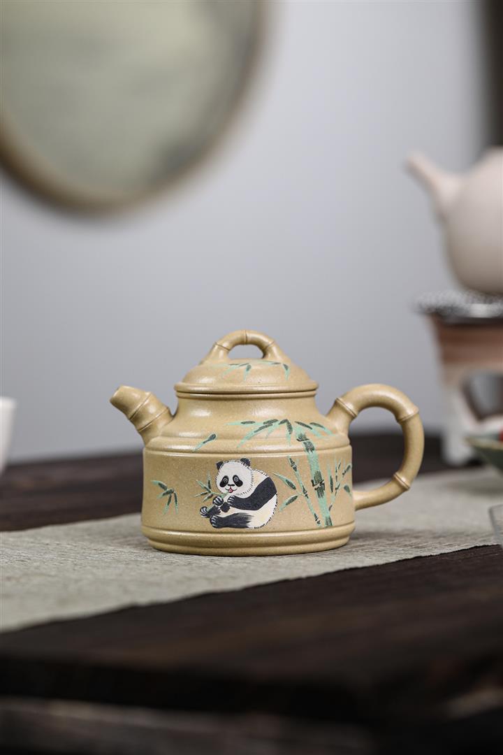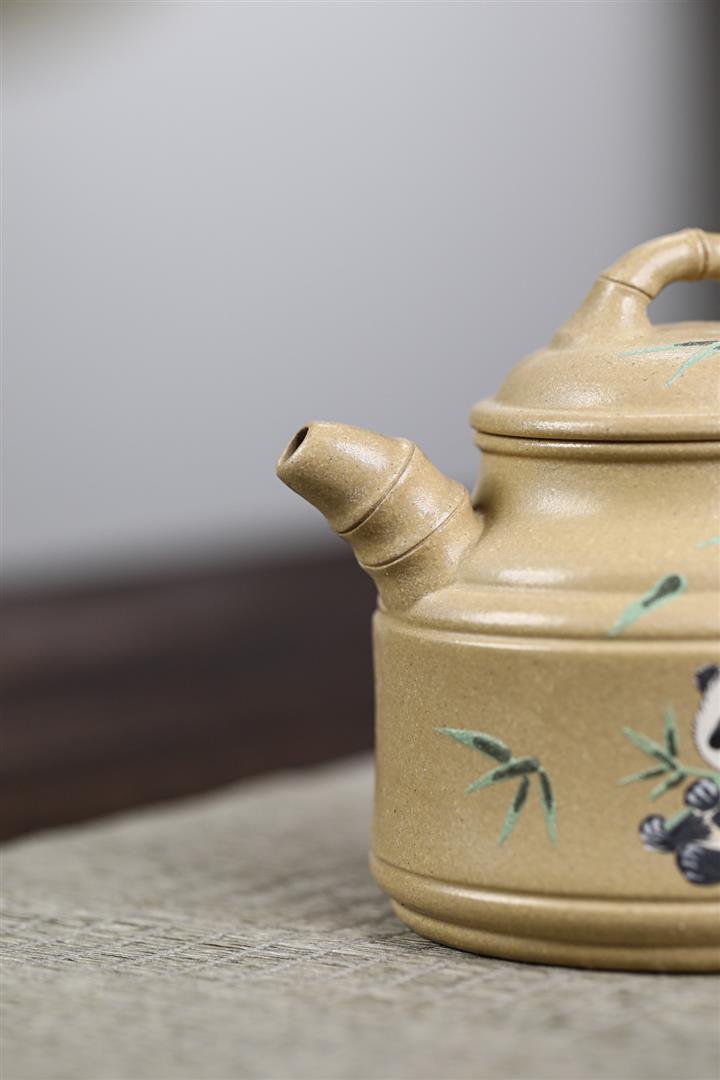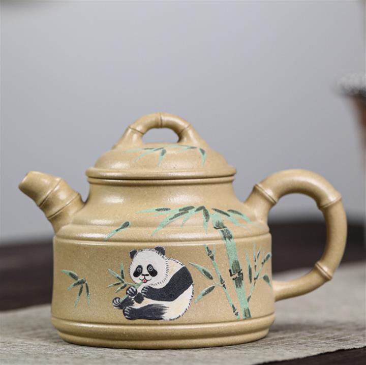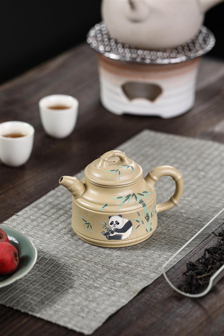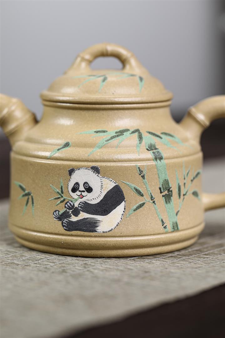 260cc原礦本綠泥彩繪熊貓竹鼎泡茶壺POT9555