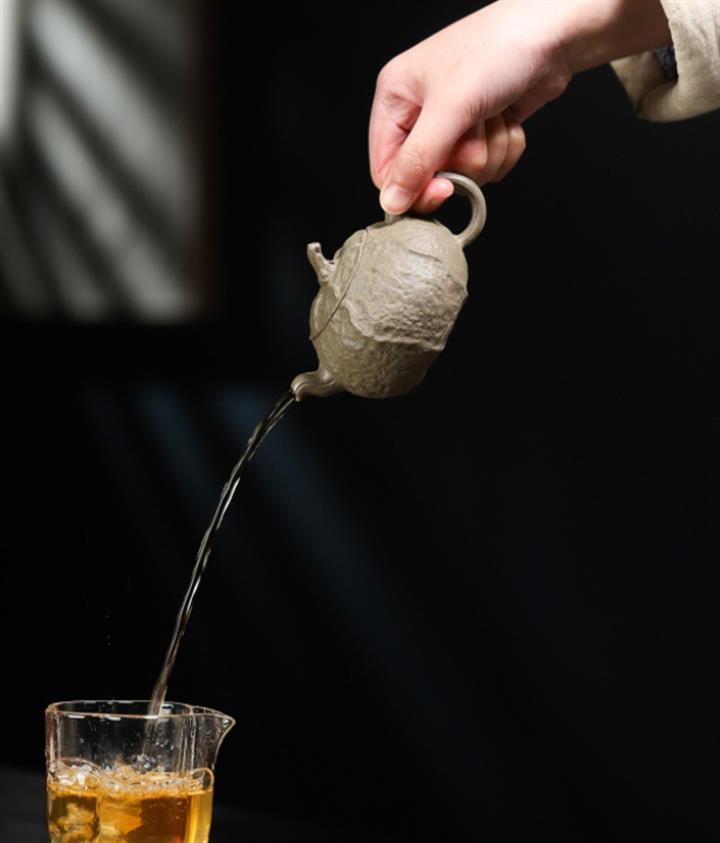 【泥料特點】砂土氣重,似淳實農民,日久使用,漸露鋒芒,養成變化,溫潤莊重。紫砂是壹種雙重氣孔結構的多孔性材質,氣孔微細,密度高。用紫砂壺沏茶,不失原味,且香不渙散,得茶之真香真味。紫砂使用越久,壺身色澤越發光亮照人,氣韻溫雅。紫砂壺長久使用器身會因撫摸擦拭,變得越發溫潤光澤。