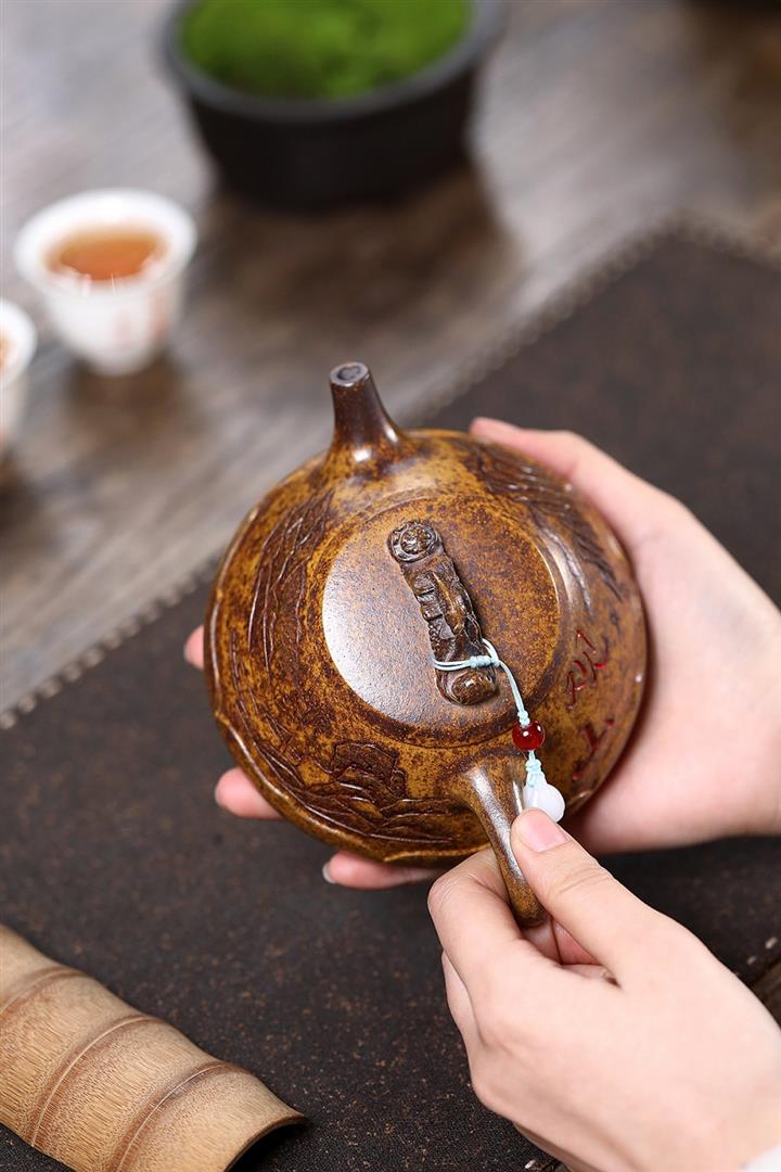 330cc原礦龍骨金砂猛虎觀山石瓢泡茶壺POT9568