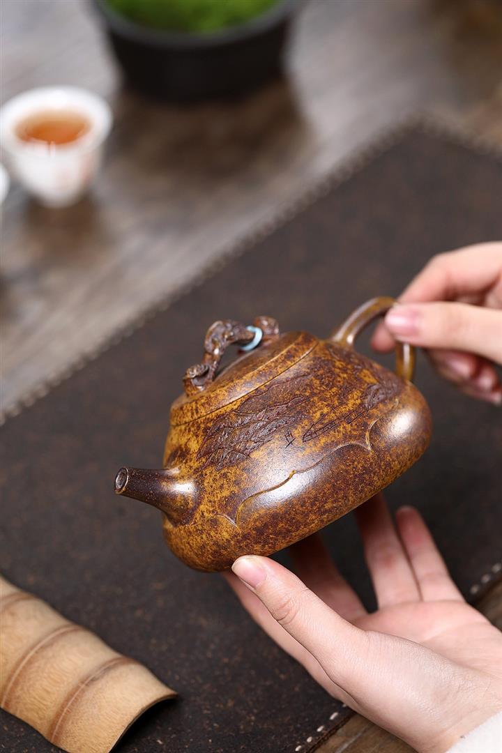 【作品介紹】此款壺形線條流暢,壺把,壺嘴,壺身壹氣呵成栩栩如生,是收藏把玩的好壺,泥料色澤古樸典雅,日久使用,漸露鋒芒,養成變化快,溫潤莊重,用其泡茶,使用的年代久,壺身就溫潤,泡出來的茶湯也就醇郁芳馨。