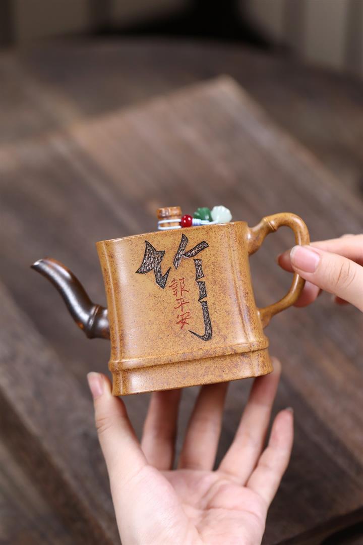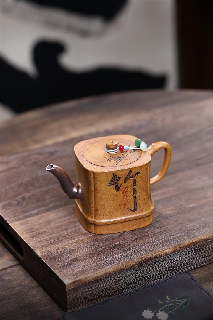 250cc原礦龍骨金砂勁竹四方泡茶壺POT9571