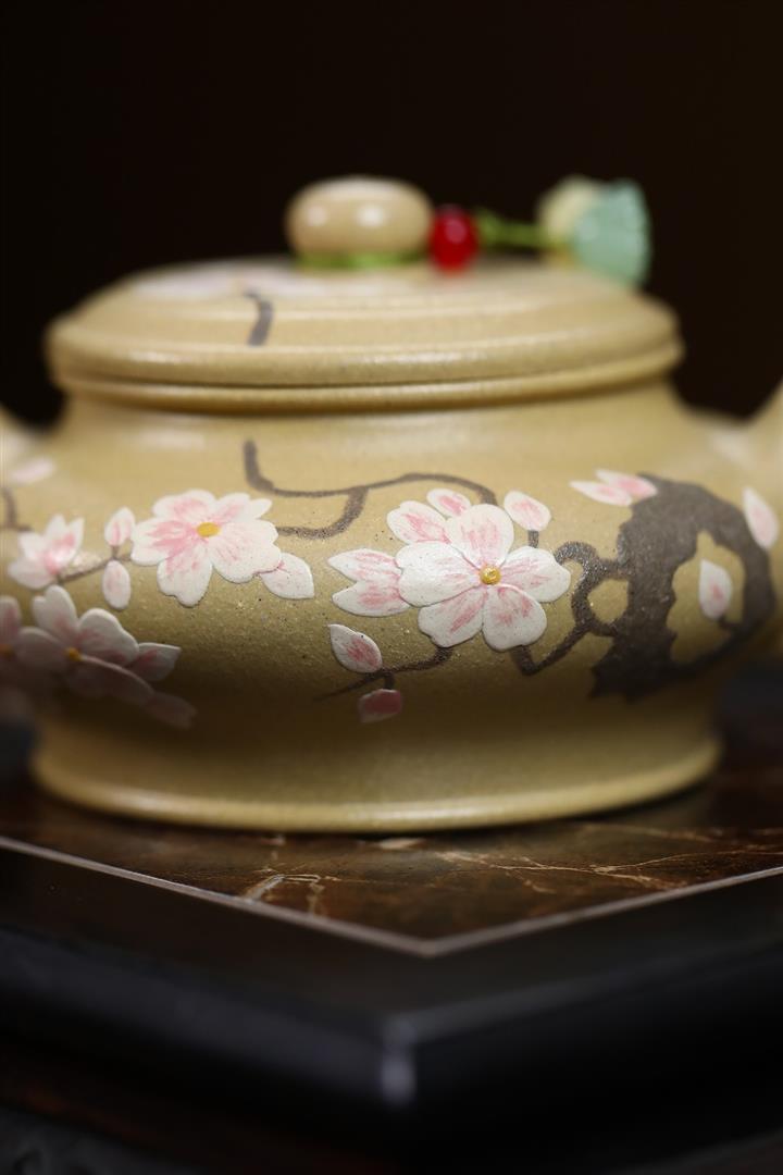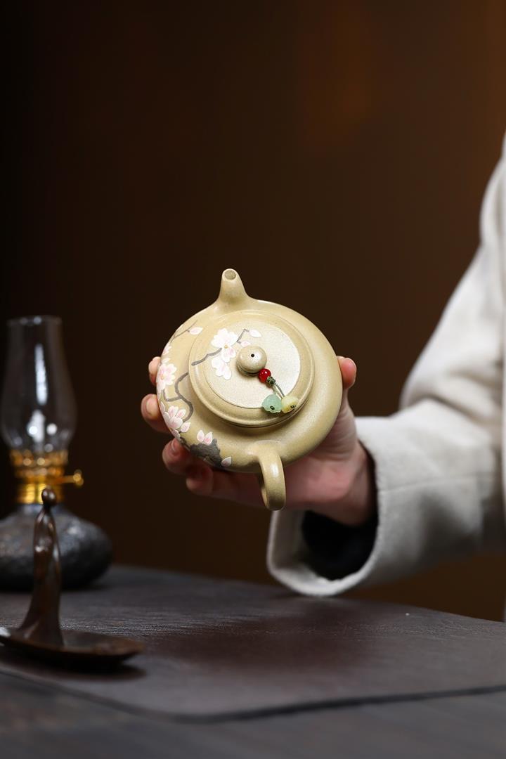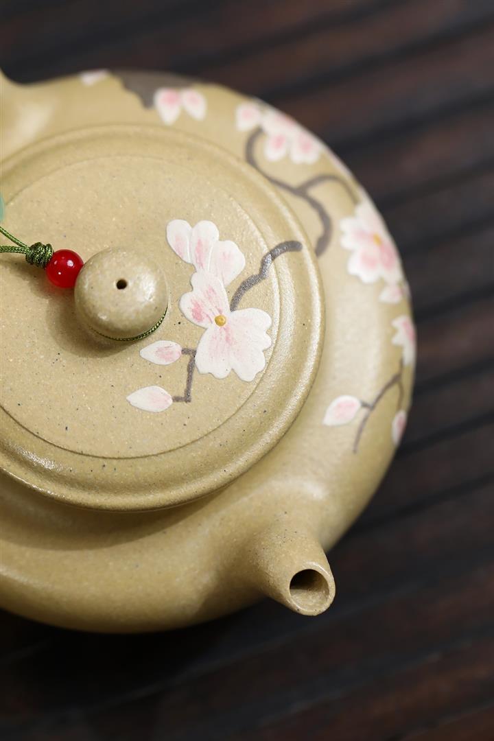 180cc原礦本山綠泥梅花虛扁泡茶壺POT9572
