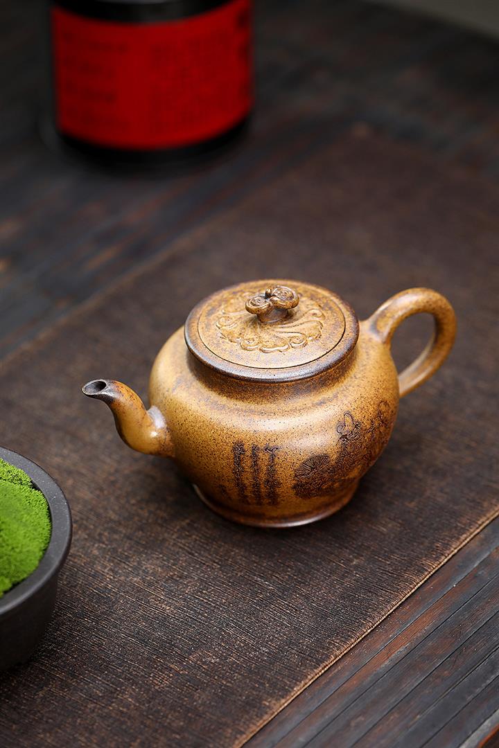 原礦皺皮朱泥墨梅扁碗玉壺茶壺POT6804
