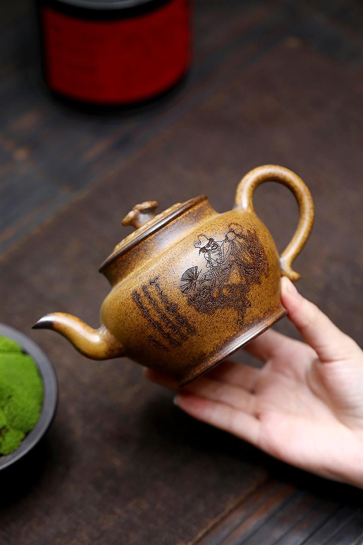 【作品介紹】此款壺形線條流暢,壺把,壺嘴,壺身壹氣呵成栩栩如生,是收藏把玩的好壺,泥料色澤古樸典雅,日久使用,漸露鋒芒,養成變化快,溫潤莊重,用其泡茶,使用的年代久,壺身就溫潤,泡出來的茶湯也就醇郁芳馨。