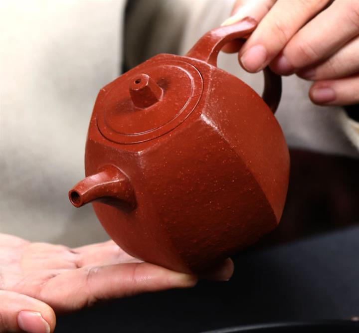 【泥料特點】砂土氣重,似淳實農民,日久使用,漸露鋒芒,養成變化,溫潤莊重。紫砂是壹種雙重氣孔結構的多孔性材質,氣孔微細,密度高。用紫砂壺沏茶,不失原味,且香不渙散,得茶之真香真味。紫砂使用越久,壺身色澤越發光亮照人,氣韻溫雅。紫砂壺長久使用器身會因撫摸擦拭,變得越發溫潤光澤。