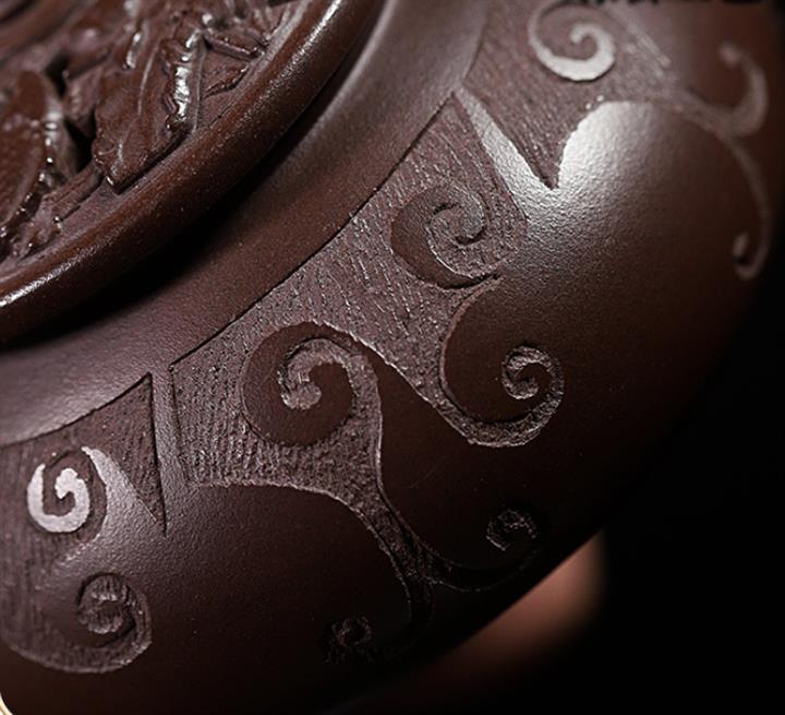 【泥料特點】砂土氣重,似淳實農民,日久使用,漸露鋒芒,養成變化,溫潤莊重。紫砂是壹種雙重氣孔結構的多孔性材質,氣孔微細,密度高。用紫砂壺沏茶,不失原味,且香不渙散,得茶之真香真味。紫砂使用越久,壺身色澤越發光亮照人,氣韻溫雅。紫砂壺長久使用器身會因撫摸擦拭,變得越發溫潤光澤。