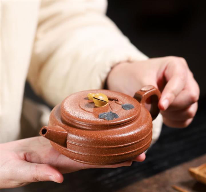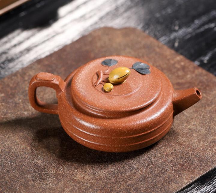【泥料特點】砂土氣重,似淳實農民,日久使用,漸露鋒芒,養成變化,溫潤莊重。紫砂是壹種雙重氣孔結構的多孔性材質,氣孔微細,密度高。用紫砂壺沏茶,不失原味,且香不渙散,得茶之真香真味。紫砂使用越久,壺身色澤越發光亮照人,氣韻溫雅。紫砂壺長久使用器身會因撫摸擦拭,變得越發溫潤光澤。